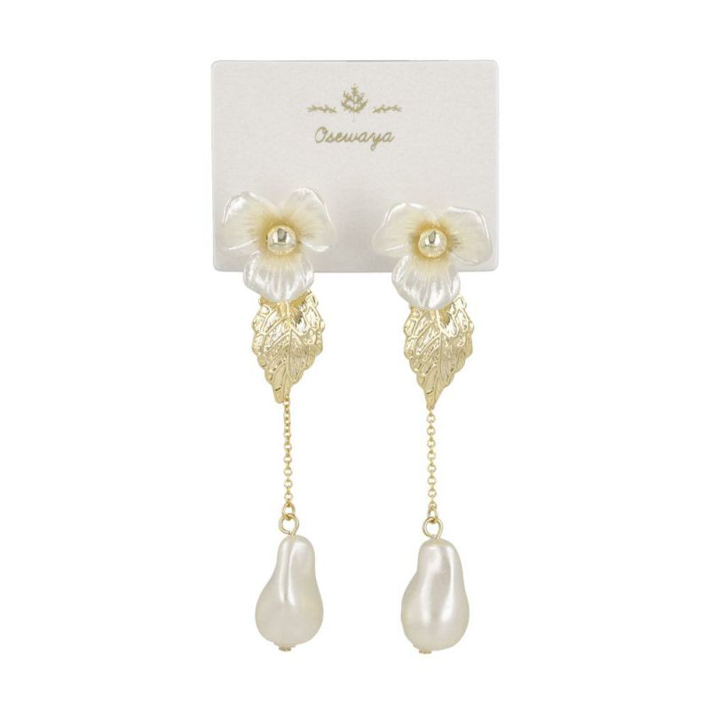 ピアス ニッケルフリー メタル パール フラワー 花 リーフ チェーン チタンポスト ドロップピアス