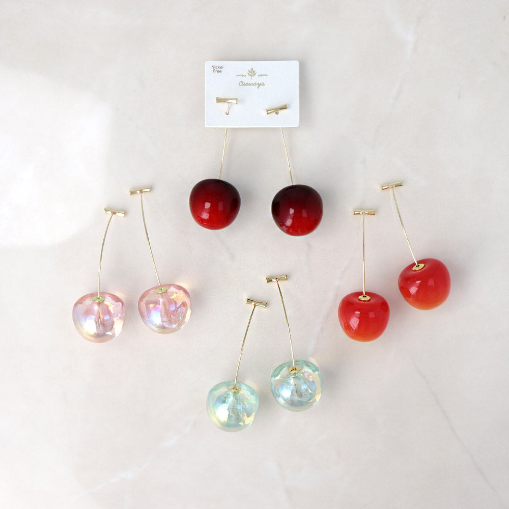 ピアス ニッケルフリー メタル チェリー さくらんぼ クリア カラー バックキャッチ スタッドピアス