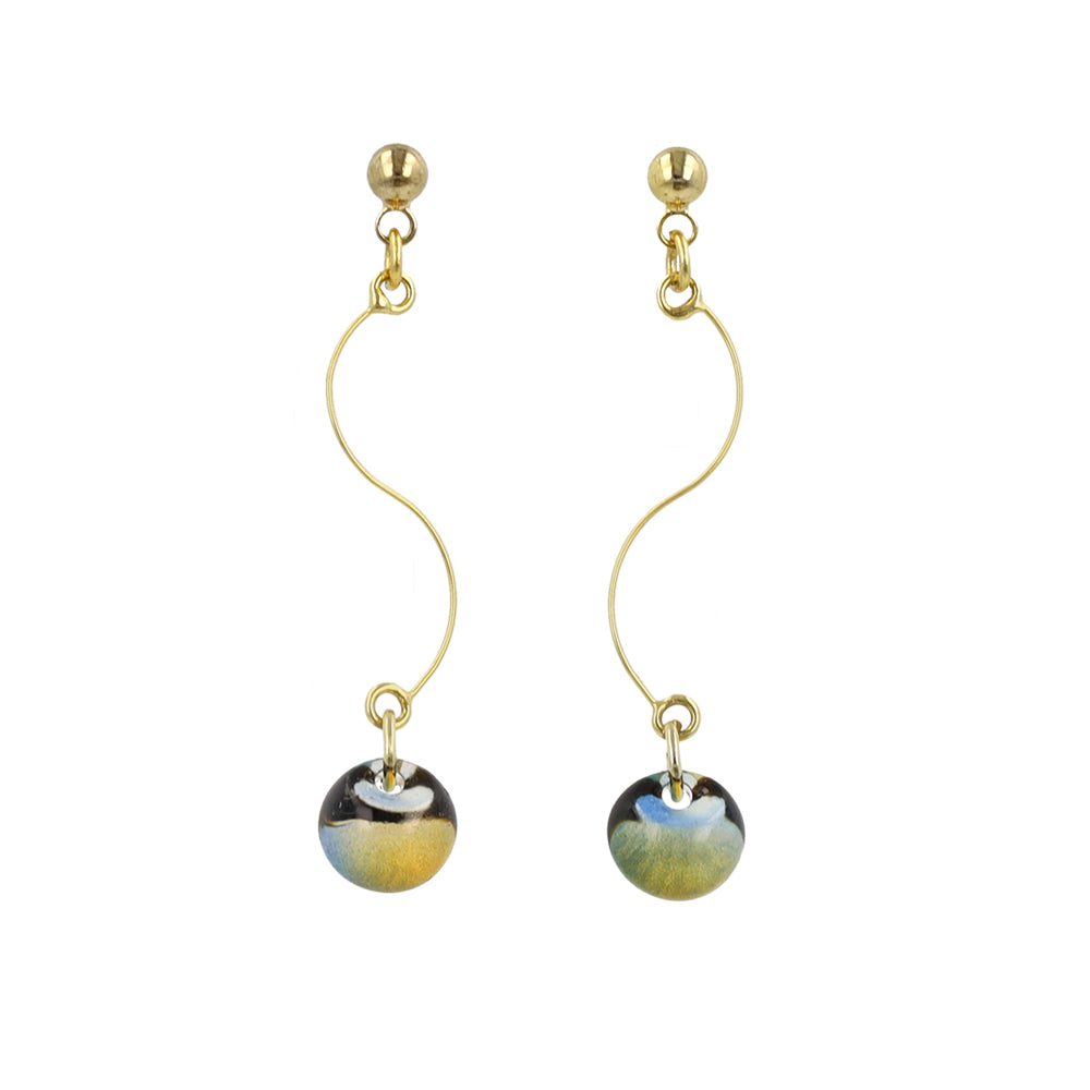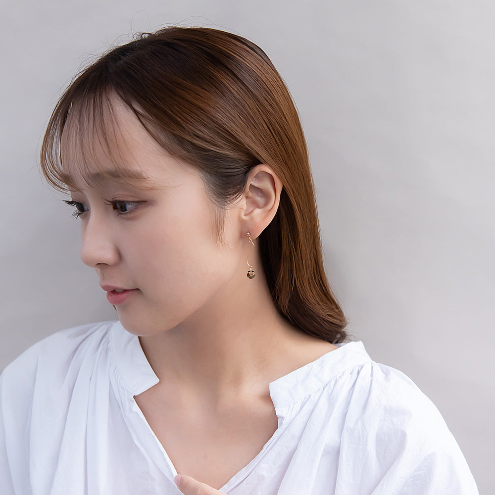 ax0542シックな色合いのバイカラーパーツが軽やかに揺れるピアス。