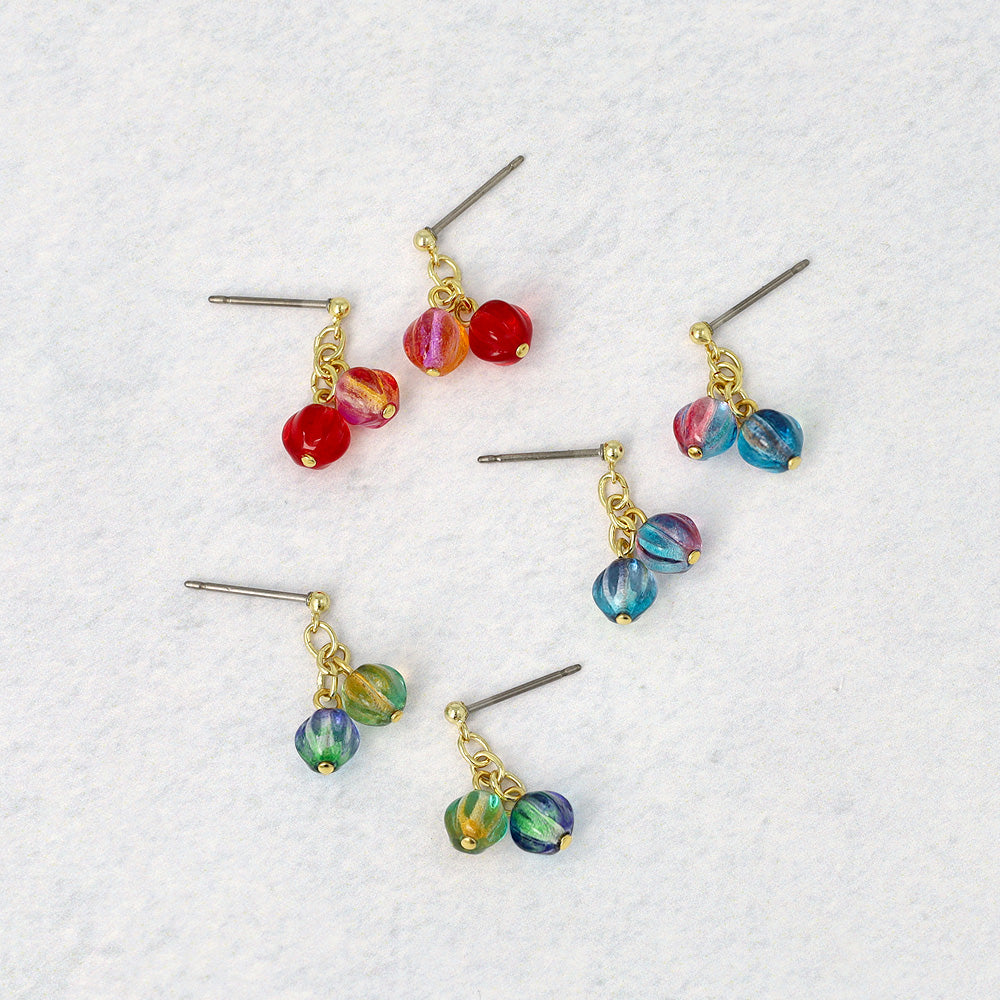 ピアス グラデーション ガラス玉 ストーン チタンポスト スタッドピアス