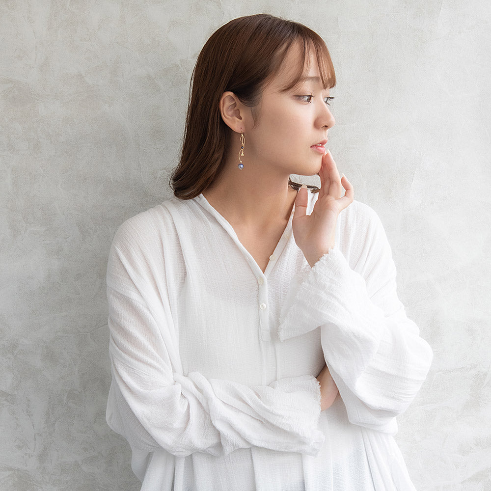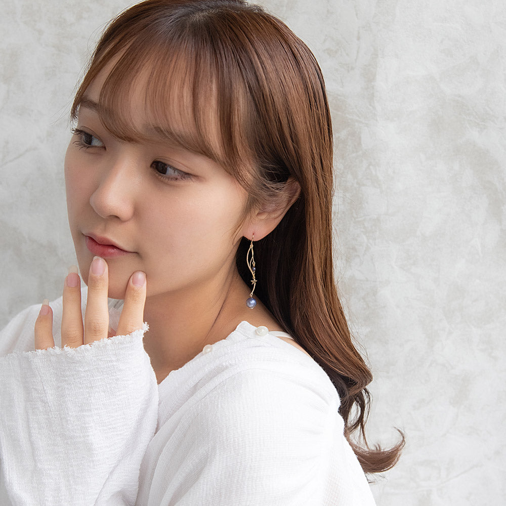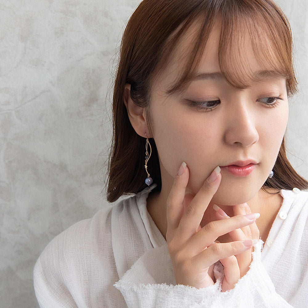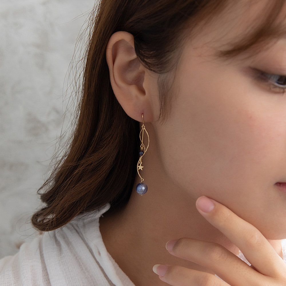 ax1398夜空に輝く、美しくロマンティックなギャラクシーデザイン。キラキラと輝く星たちの瞬き、神秘的に広がる宇宙を感じられるデザイン。立体感のあるフォルムにきらりと輝く星。人気のゆれるデザインで、耳元を華やかに演出します。さりげないゆれ感もかわいく、存在感もあってコーデ映え。