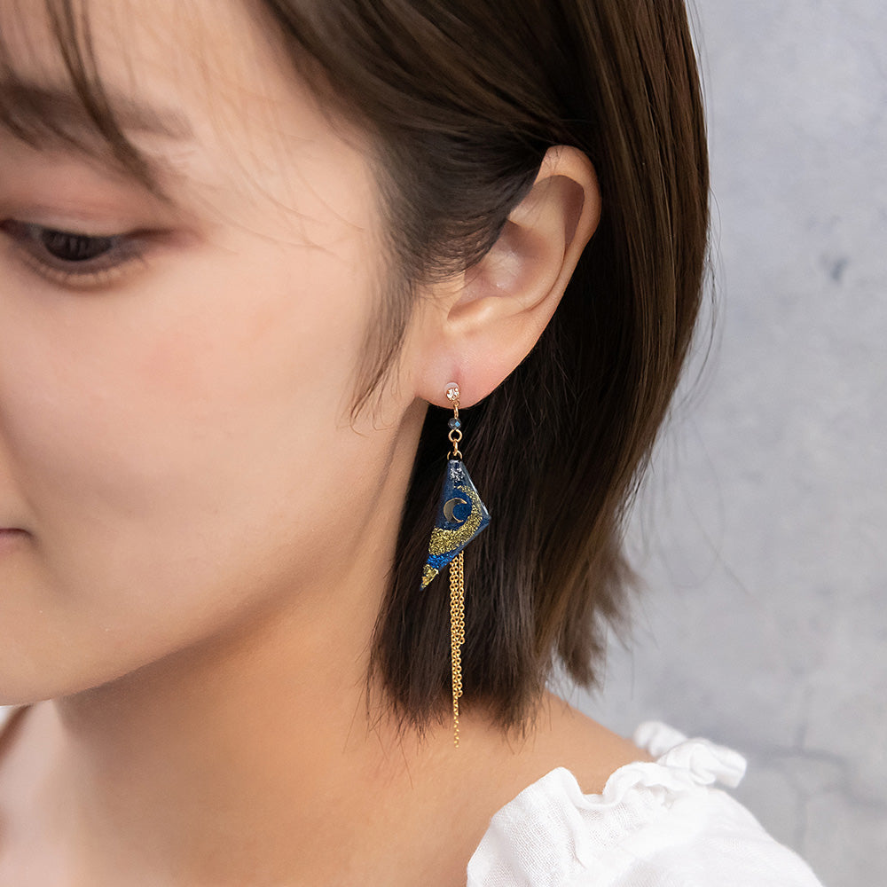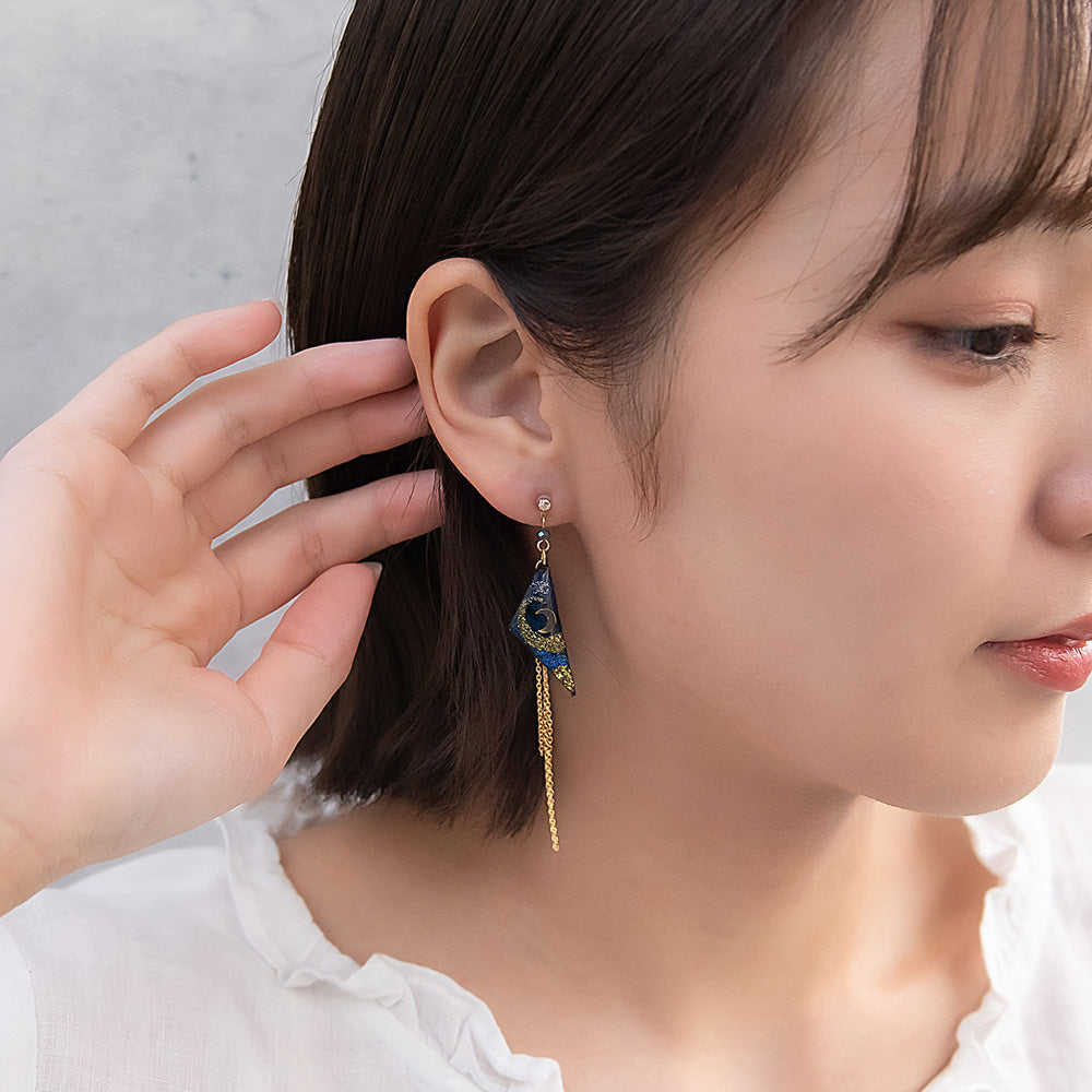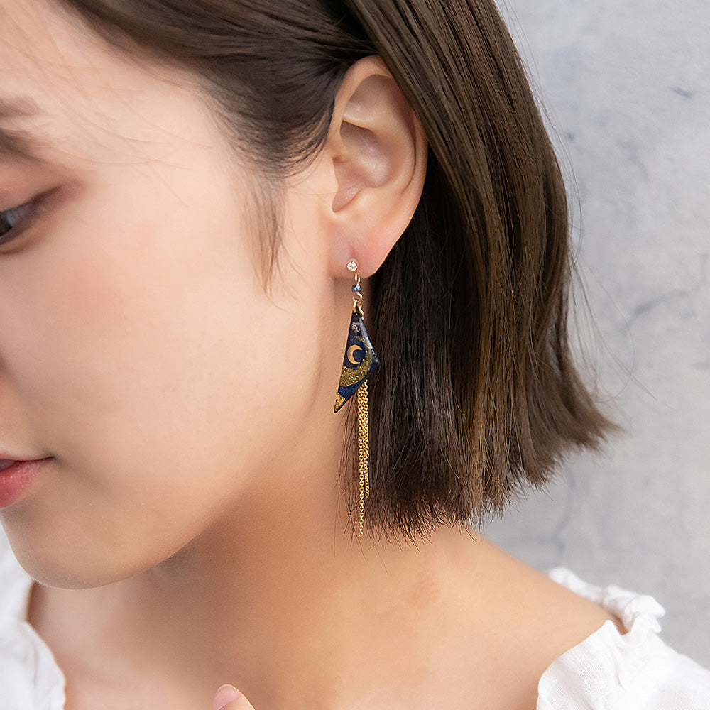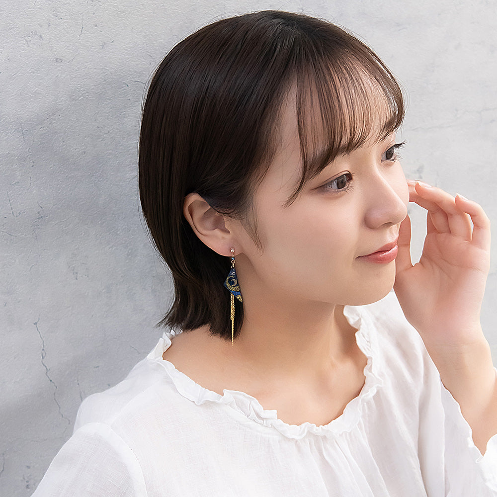 ax1406夜空に輝く、美しくロマンティックなギャラクシーデザイン。キラキラと輝く星たちの瞬き、神秘的に広がる宇宙を感じられるデザイン。人気のゆれるデザインで、耳元を華やかに演出します。さりげないゆれ感もかわいく、存在感もあってコーデ映え。