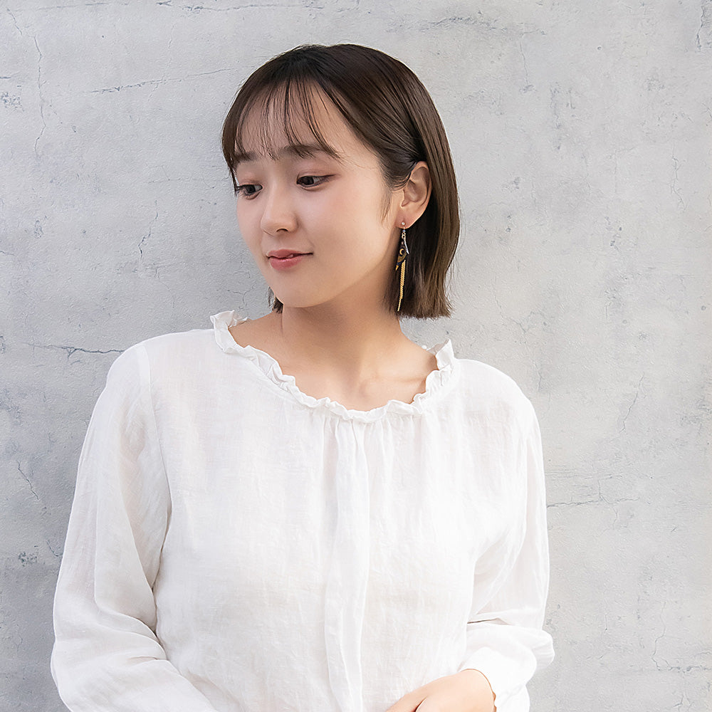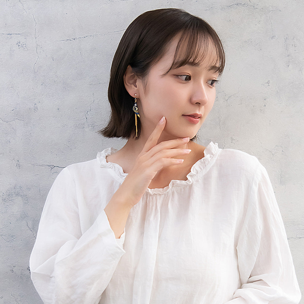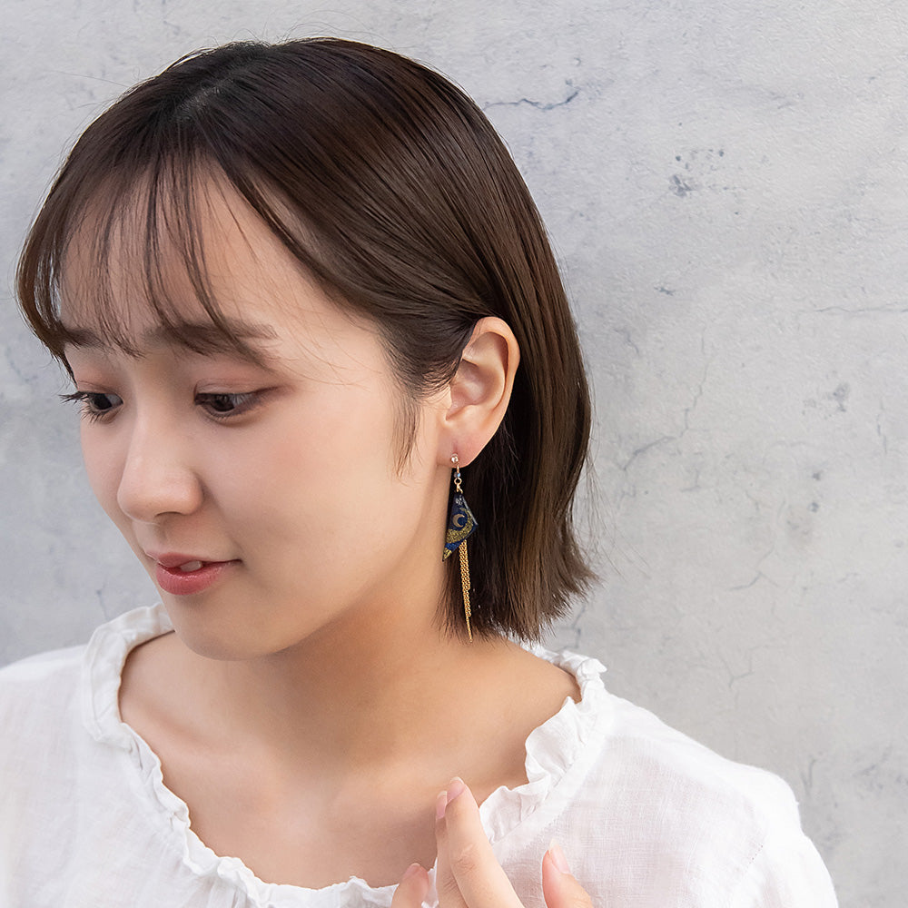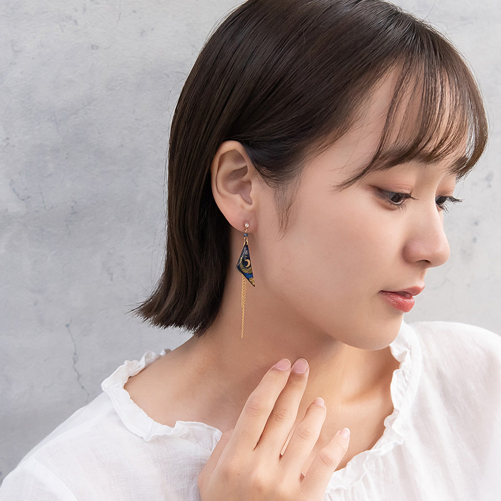 ax1406夜空に輝く、美しくロマンティックなギャラクシーデザイン。キラキラと輝く星たちの瞬き、神秘的に広がる宇宙を感じられるデザイン。人気のゆれるデザインで、耳元を華やかに演出します。さりげないゆれ感もかわいく、存在感もあってコーデ映え。