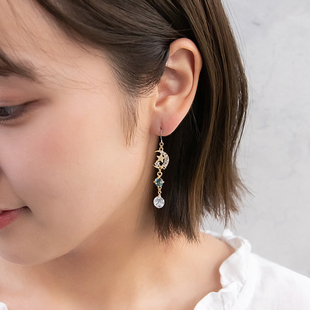 ピアス ニッケルフリー 宇宙 サン ムーン スター キュービックジルコニア フックピアス