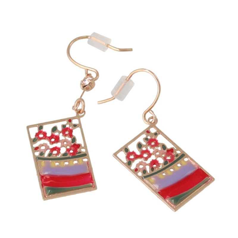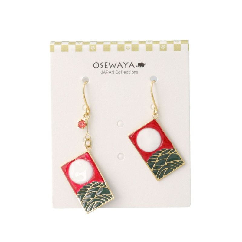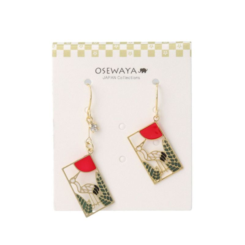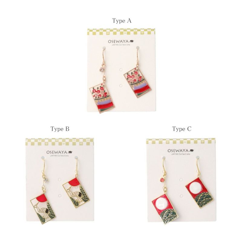 ピアス 花札 桜に幕 松に鶴 芒に月 ストーン サージカルステンレスポスト フックピアス