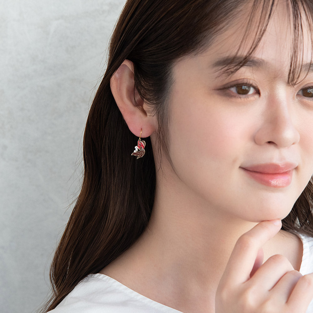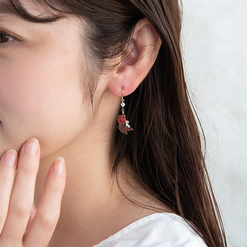 縁起物としても人気の金魚をモチーフにしたピアスは、アシンメトリーデザインになっており涼し気で夏らしいアイテムとなっています。和風モチーフは浴衣や着物によく合うので、お祭りや花火大会などのコーディネートにもおすすめです。