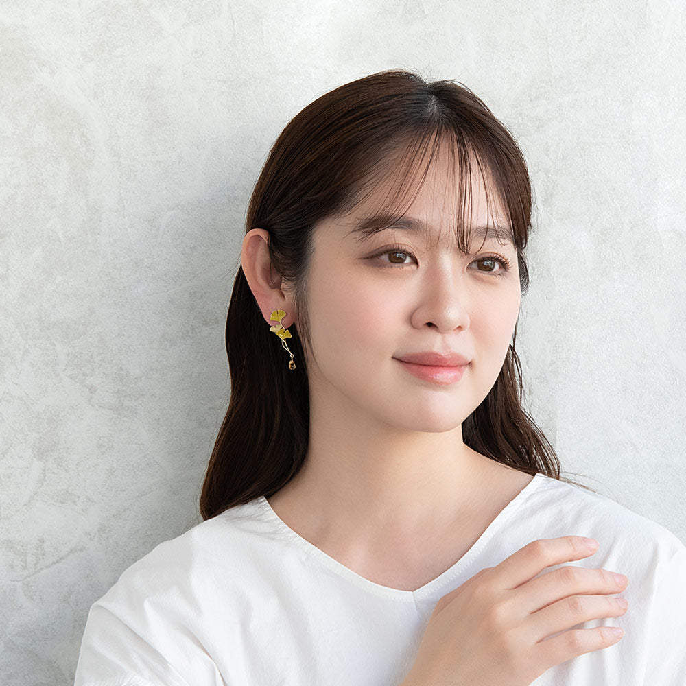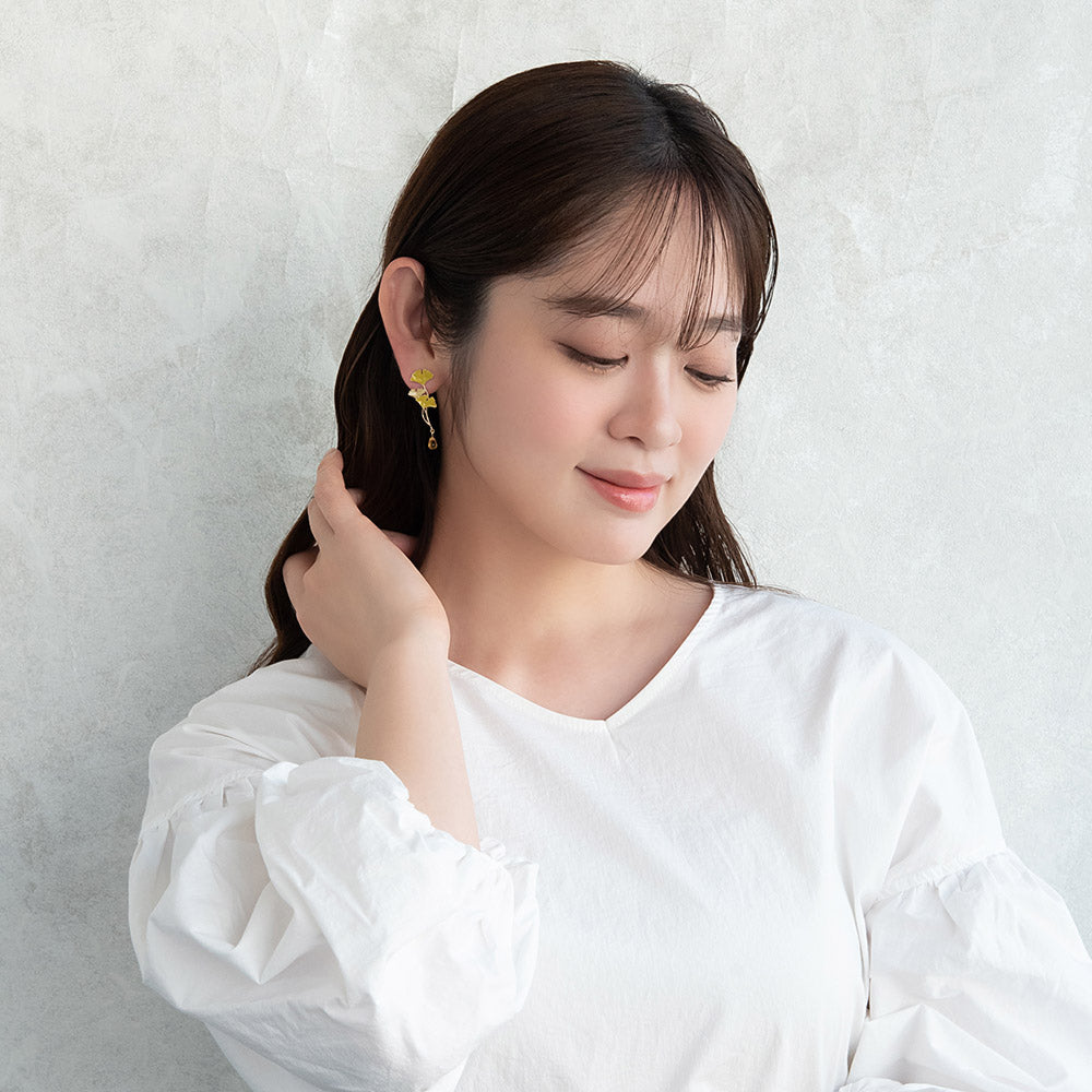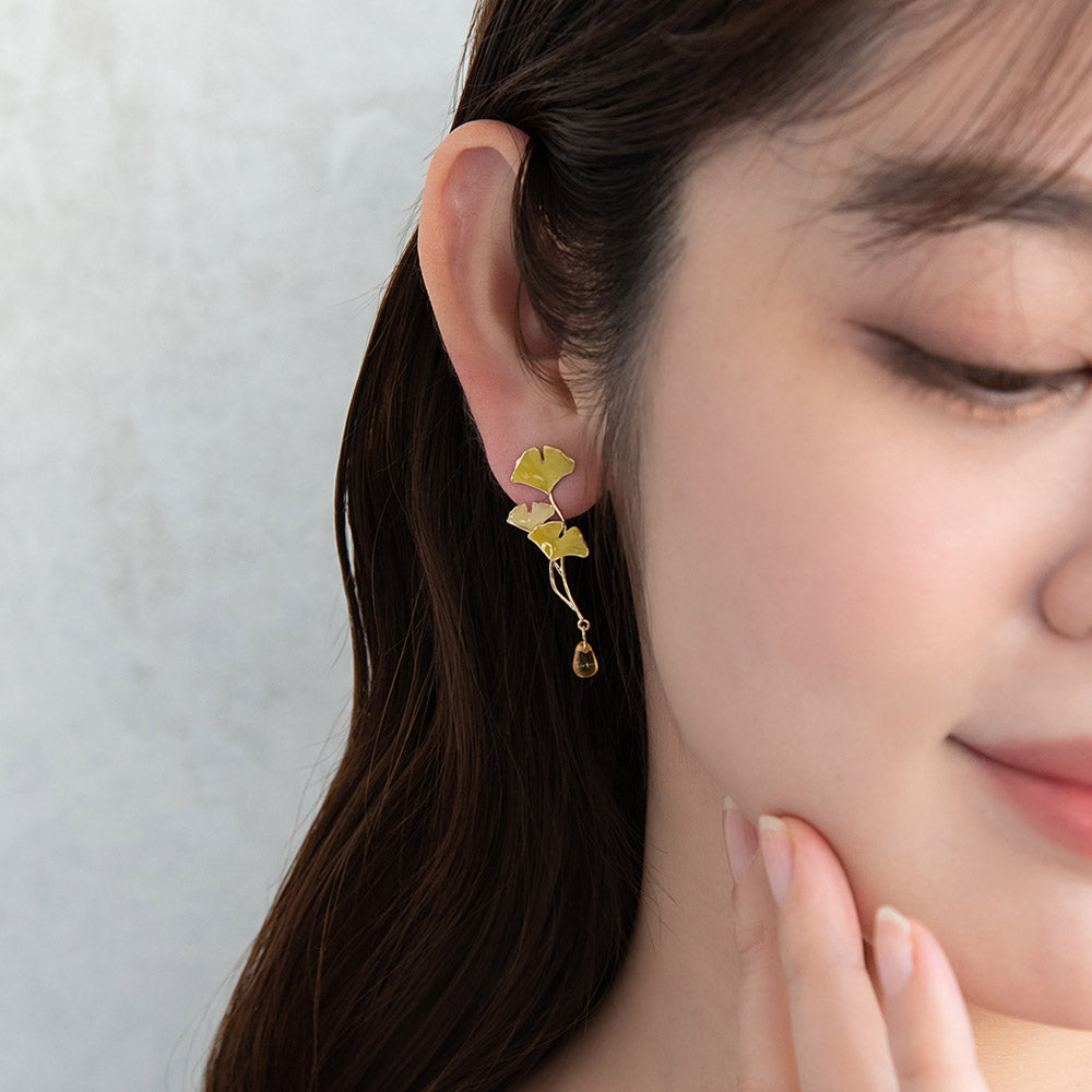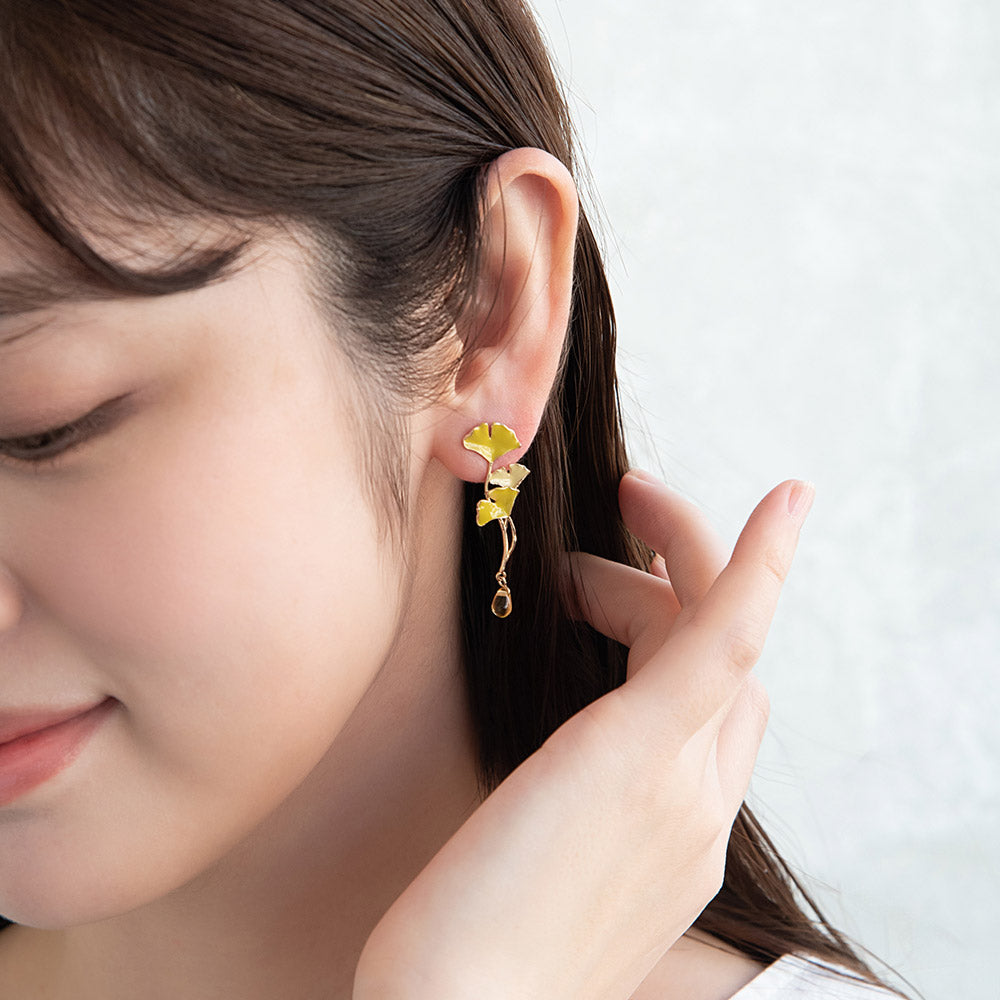 ピアス ニッケルフリー 銀杏 イチョウ ドロップ ビーズ チタンポスト スタッドピアス