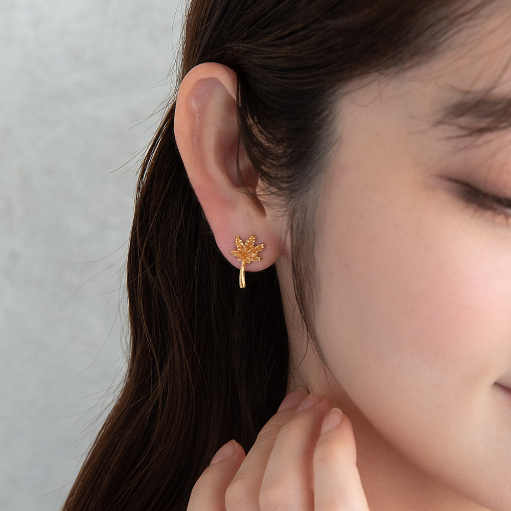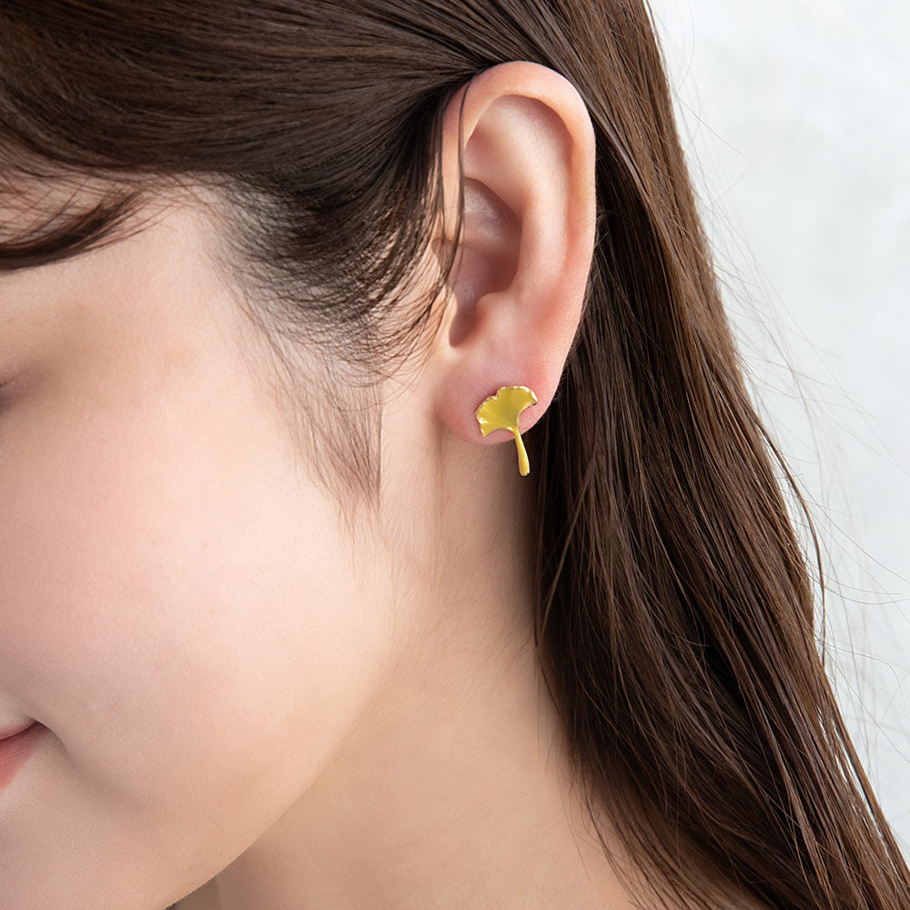 ピアス ニッケルフリー メタル 紅葉 もみじ 銀杏 イチョウ アシンメトリー チタンポスト スタッドピアス