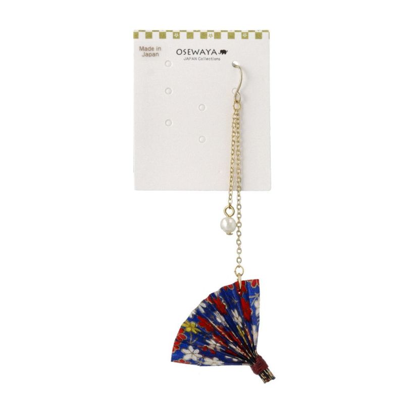 ピアス ニッケルフリー 扇子 柄和紙 パールチェーン ロング フックピアス【1個販売】