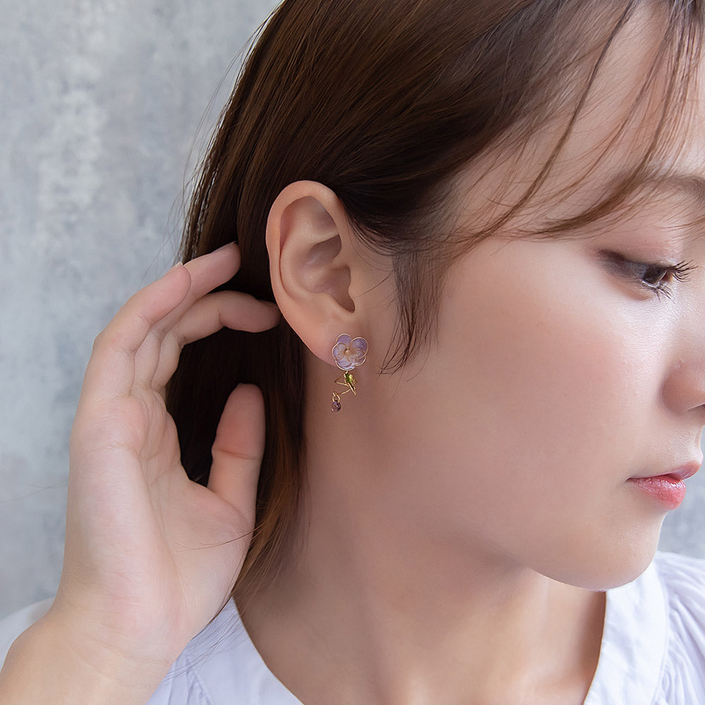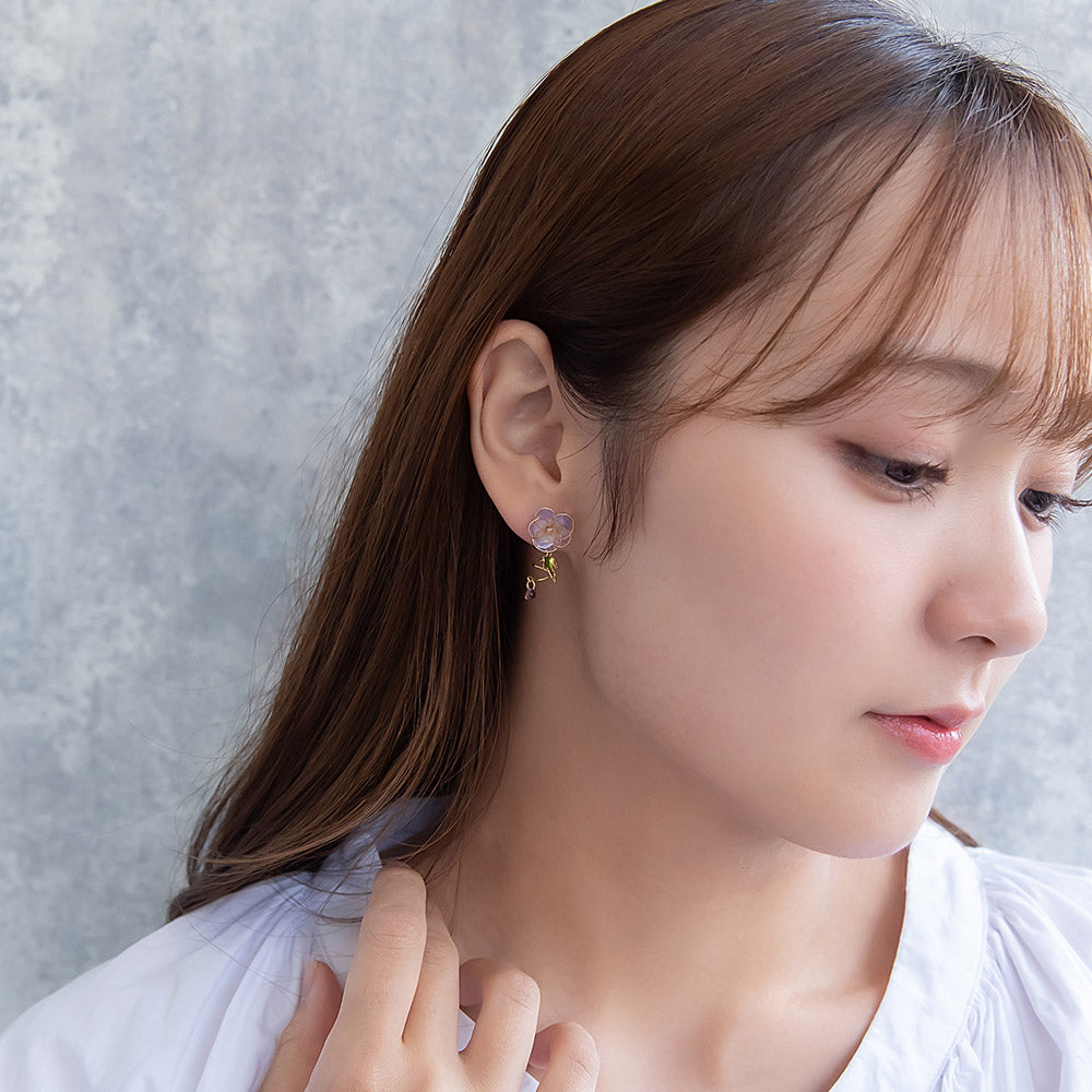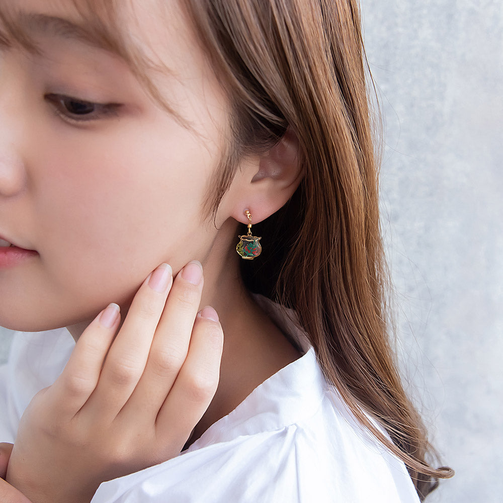 夏のお花の朝顔と縁起物としても人気の金魚をモチーフにしたピアスは、さりげないゆれ感もかわいく、涼し気で夏らしいアイテムとなっています。和風モチーフは浴衣や着物によく合うので、お祭りや花火大会などのコーディネートにもおすすめです。