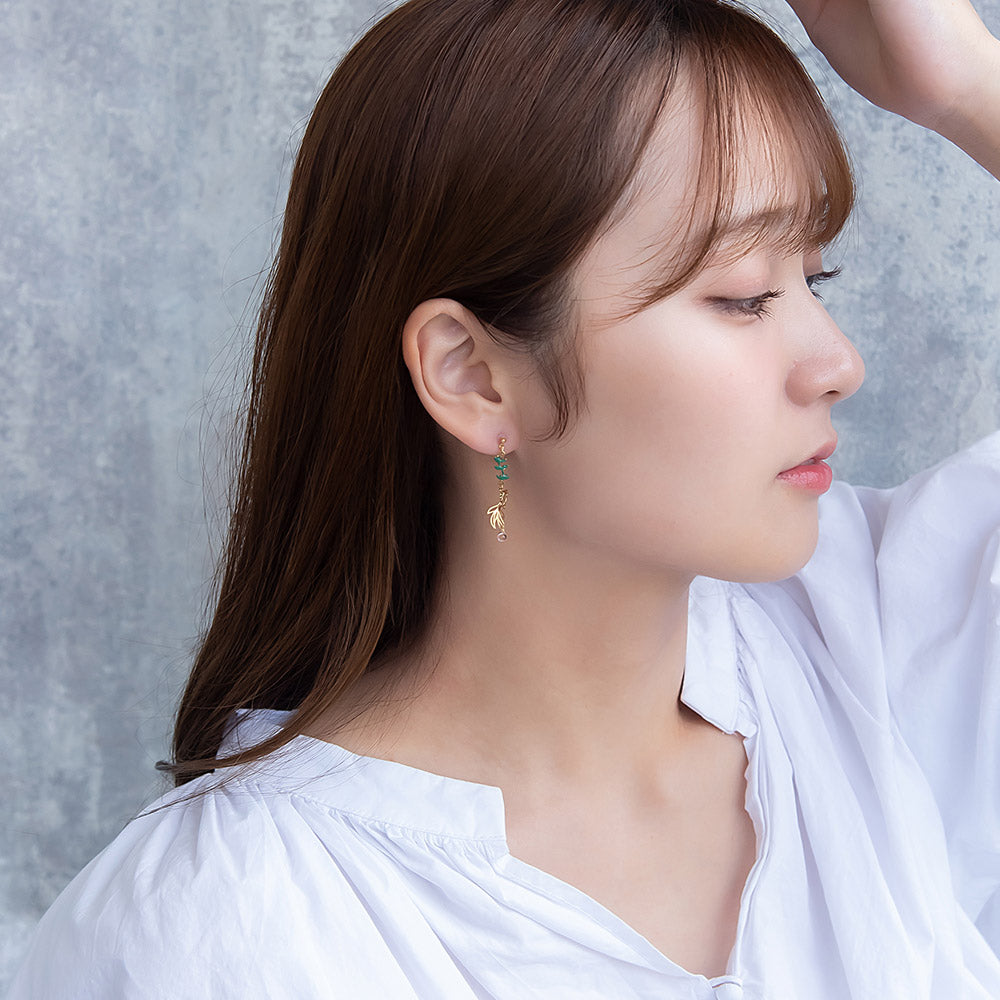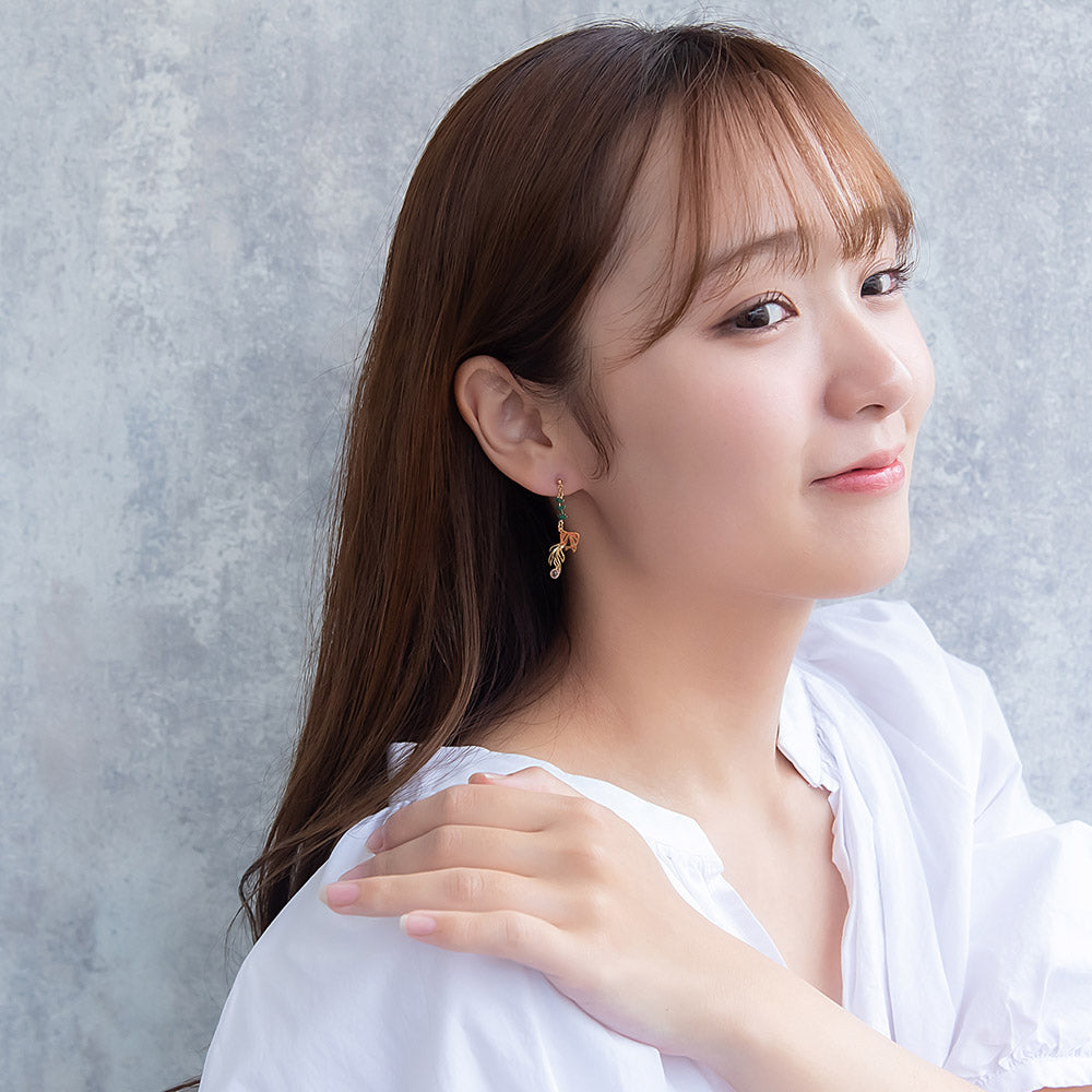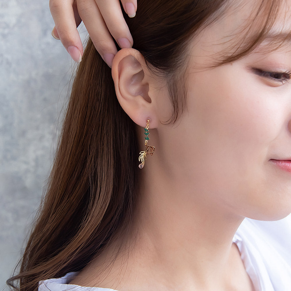 夏のお花の朝顔と縁起物としても人気の金魚をモチーフにしたピアスは、さりげないゆれ感もかわいく、涼し気で夏らしいアイテムとなっています。和風モチーフは浴衣や着物によく合うので、お祭りや花火大会などのコーディネートにもおすすめです。
