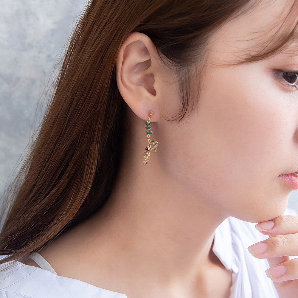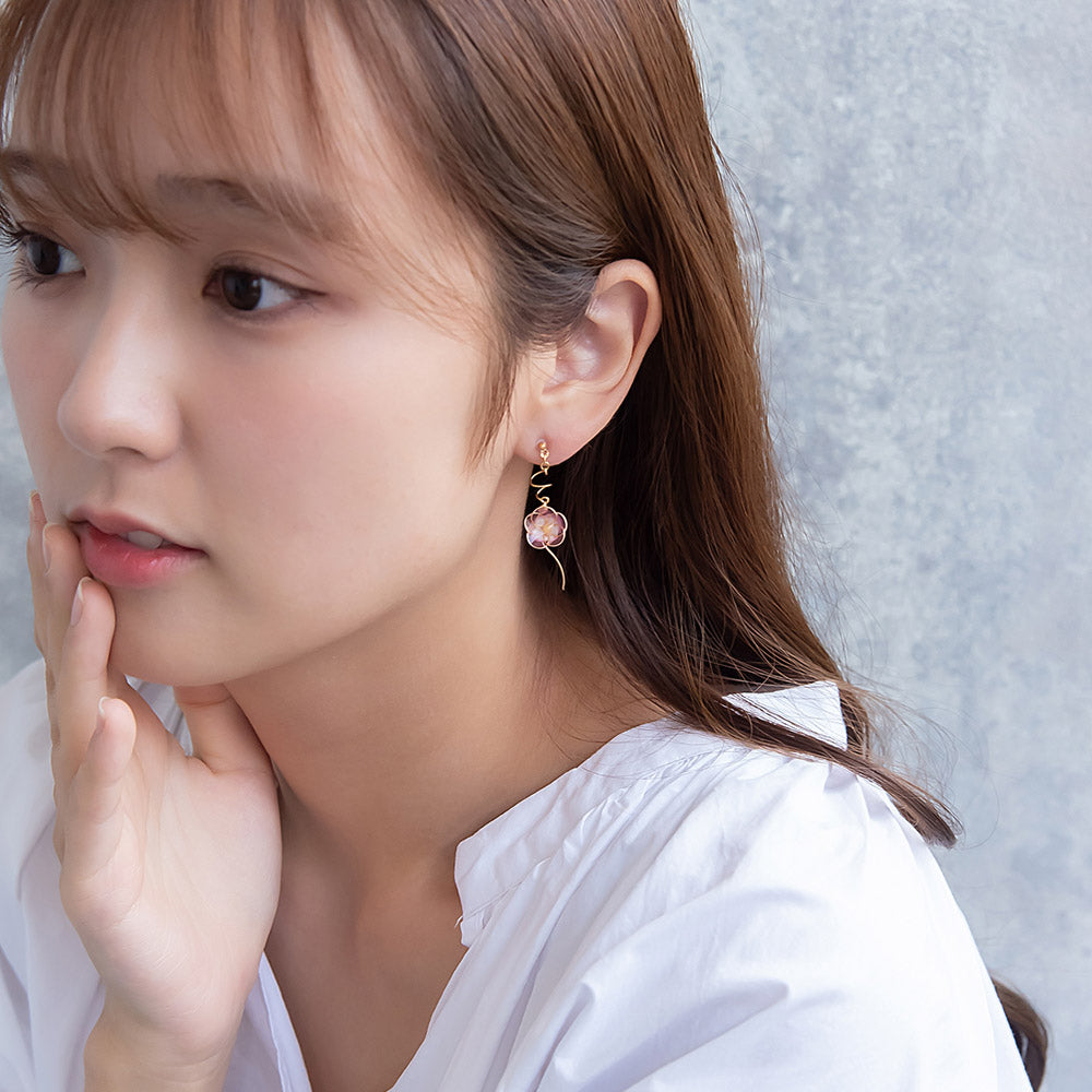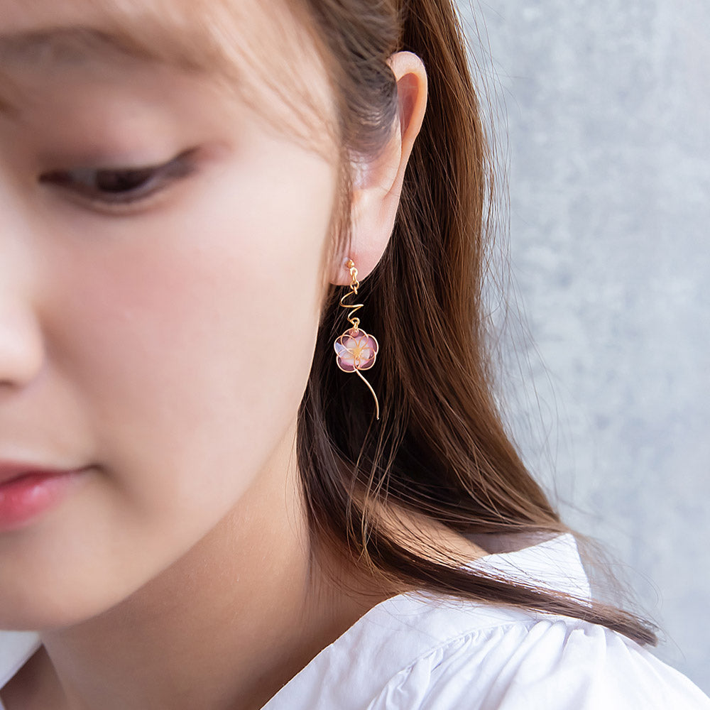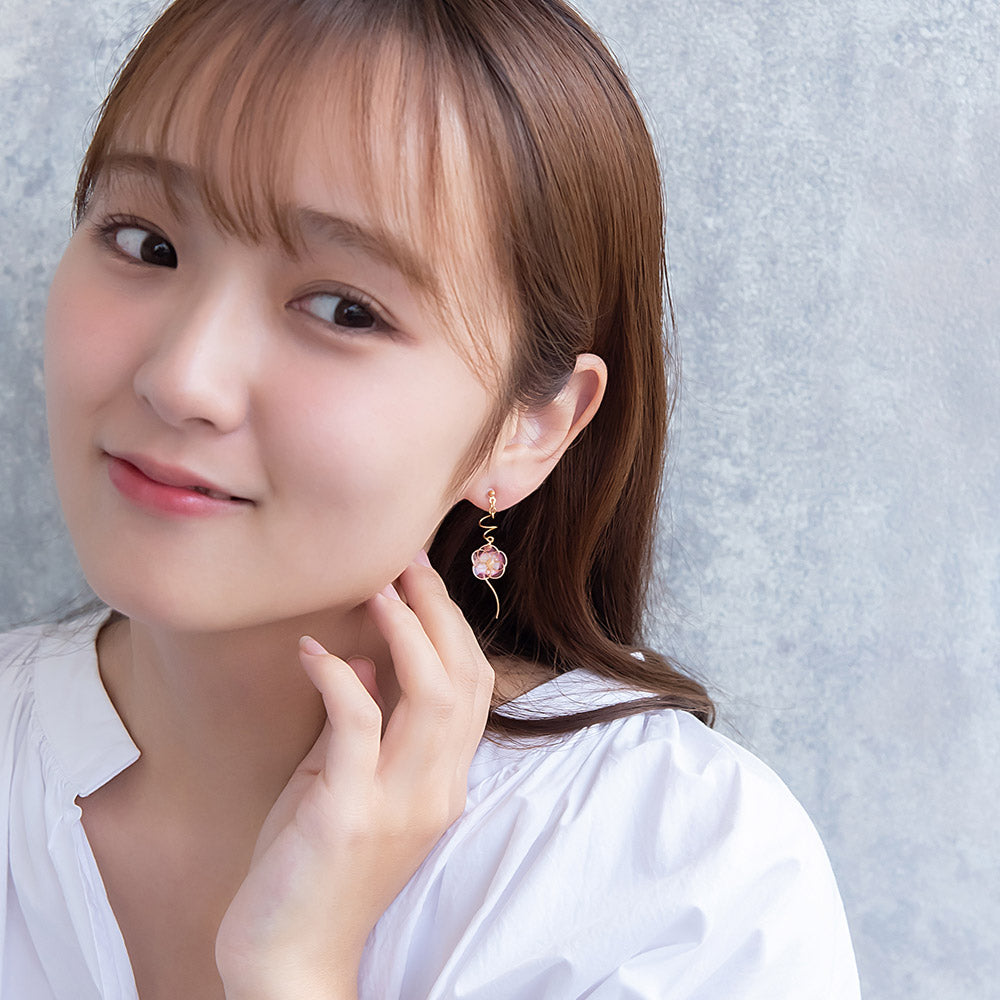 夏のお花の朝顔と縁起物としても人気の金魚をモチーフにしたピアスは、さりげないゆれ感もかわいく、涼し気で夏らしいアイテムとなっています。和風モチーフは浴衣や着物によく合うので、お祭りや花火大会などのコーディネートにもおすすめです。