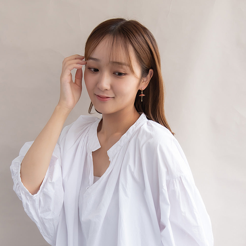 ax3264耳元に小さな和な物語を添える和風デザインのピアス。鮮やかな紅葉柄をあしらった立体的なミニチュア番傘が、コーディネートのアクセントに◎