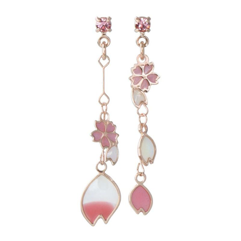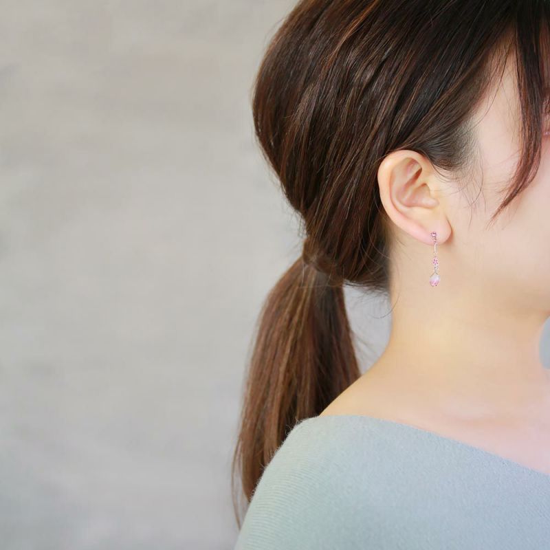 ピアス ニッケルフリー 桜 花弁 ストーン ワイヤー チタンポスト スタッドピアス