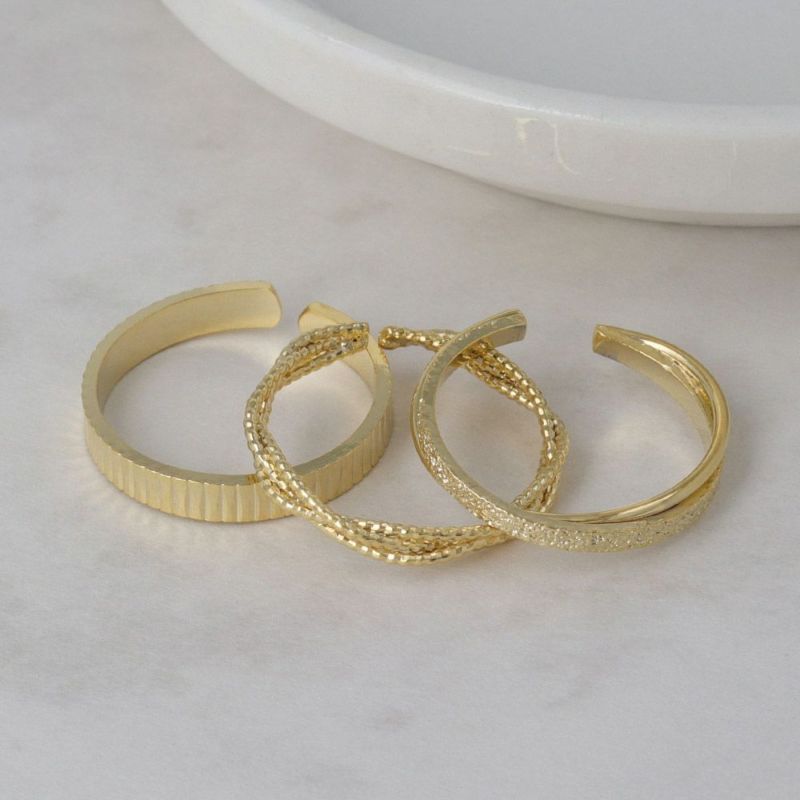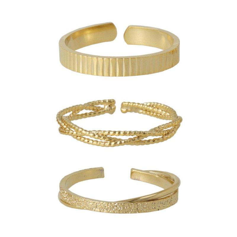 リング マルチ テクスチャー クロス 3本セット フリーサイズ 指輪
