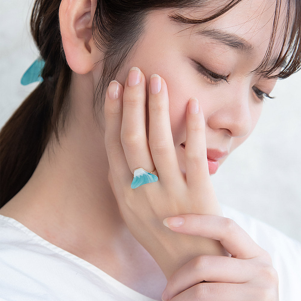 ax3239日本を代表する縁起がいいとされている山、富士山をモチーフにしたリング。ミニチュアのようなサイズ感も可愛く、模様の出方が様々なキレイ色のマーブルカラーも魅力的。人気の和風モチーフは、見ているだけでも楽しく、季節問わず使えるのでおすすめです。日本を感じるアイテムは、外国の方へのお土産やプレゼントとしても素敵です。