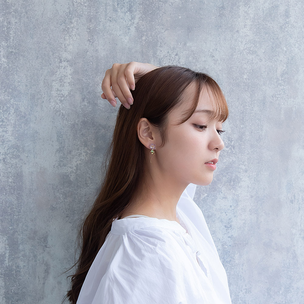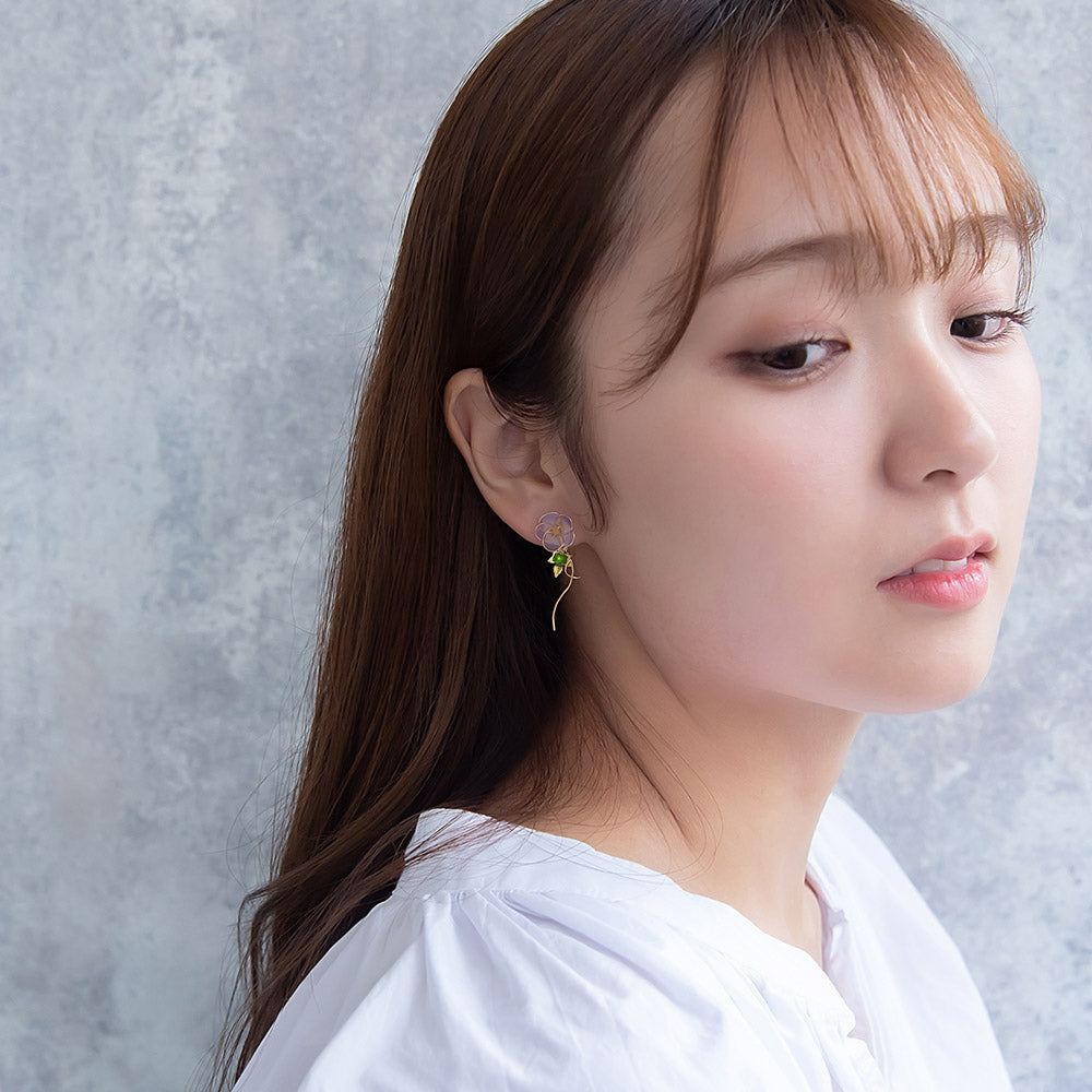 ax3261夏にぴったりなお花の朝顔をモチーフにしたピアスは、涼し気で夏らしいアイテムとなっています。和風モチーフは浴衣や着物によく合うので、お祭りや花火大会などのコーディネートにもおすすめです。