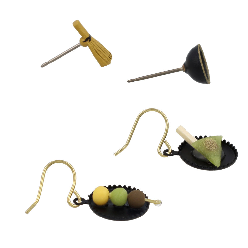 ピアス 抹茶 茶筅 和菓子 4個セット チタンポスト スタッドピアス フックピアス