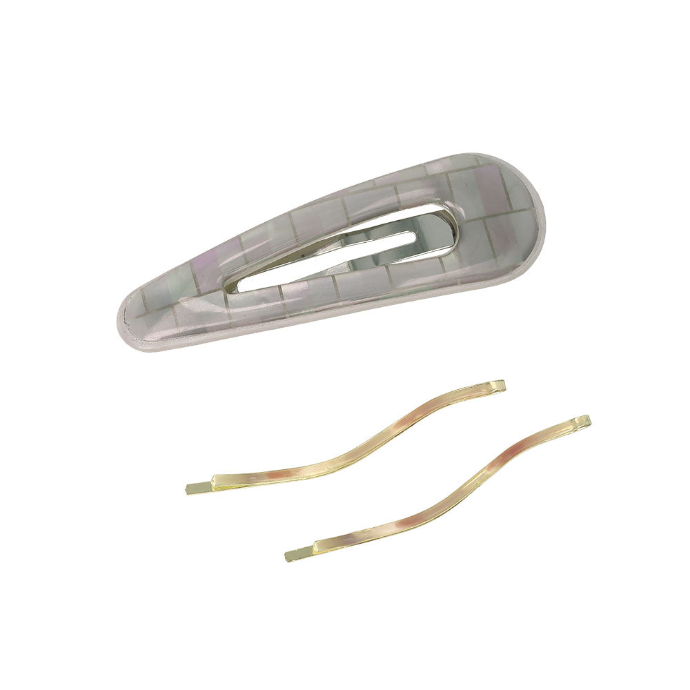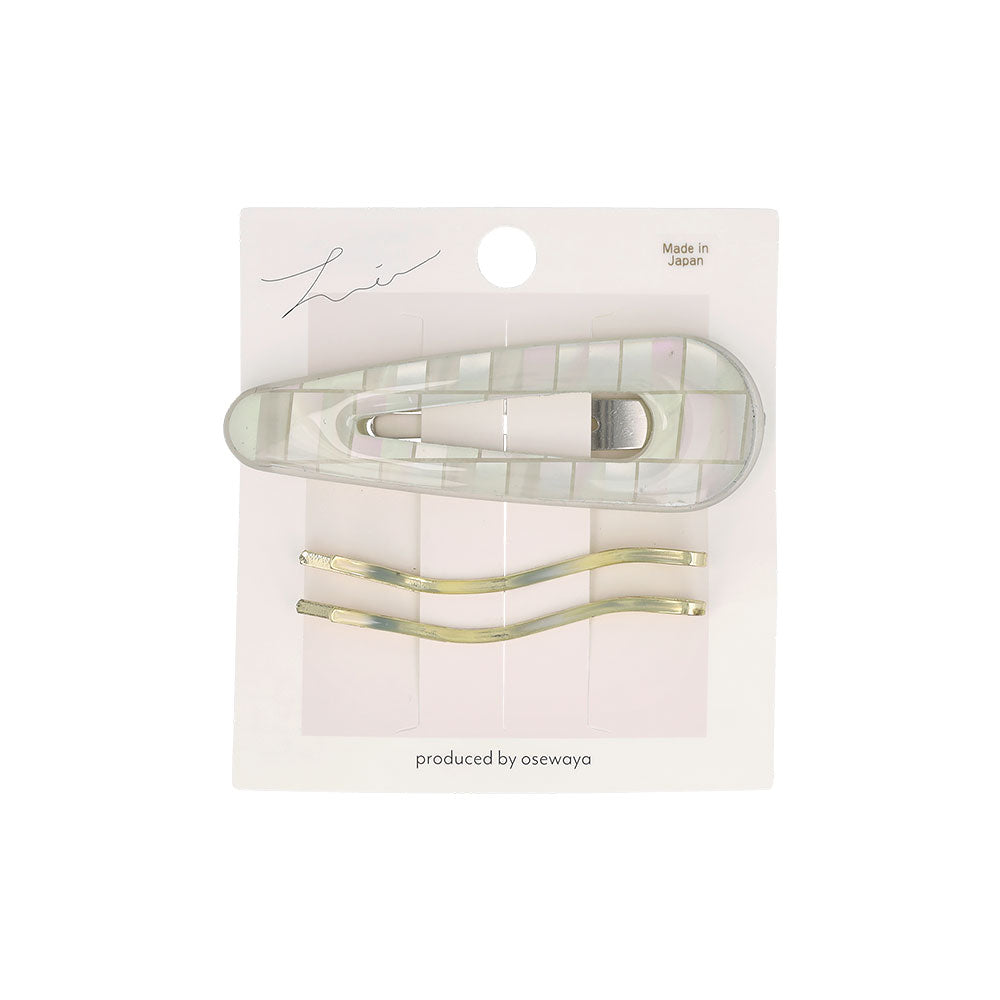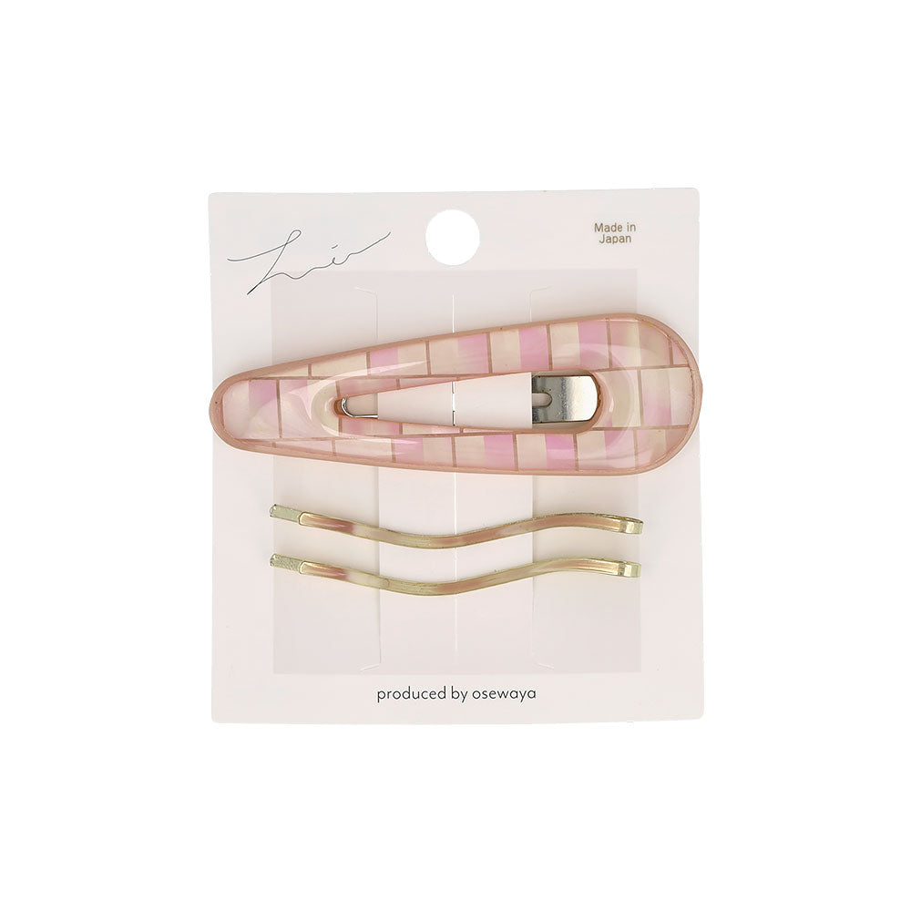 ax0535色合い豊かなチェック柄のヘアピンと、ウェーブデザインがお洒落なメタルピンの3個セット。