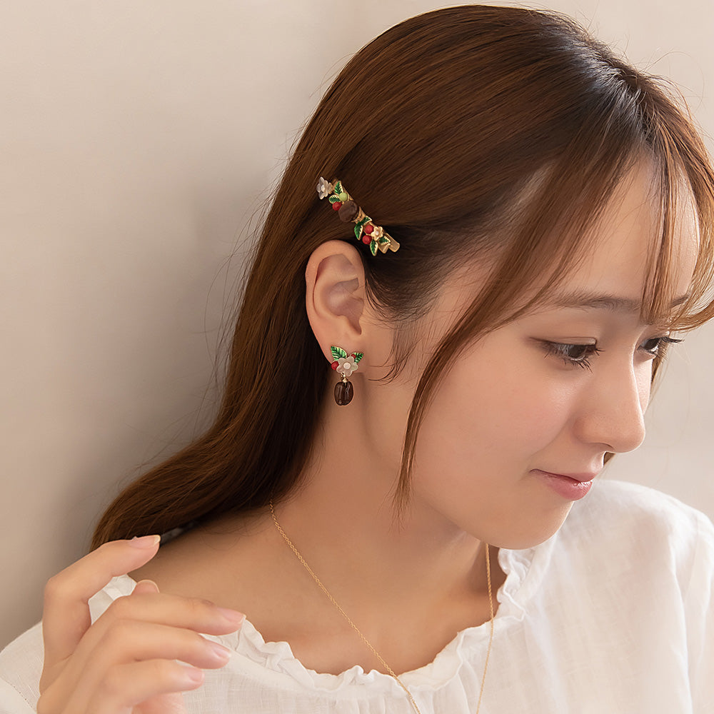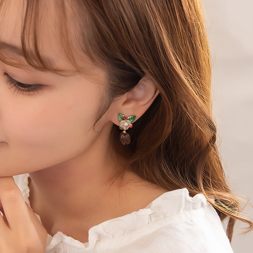 【Ayatorie】コーヒー豆とお花のイヤリング