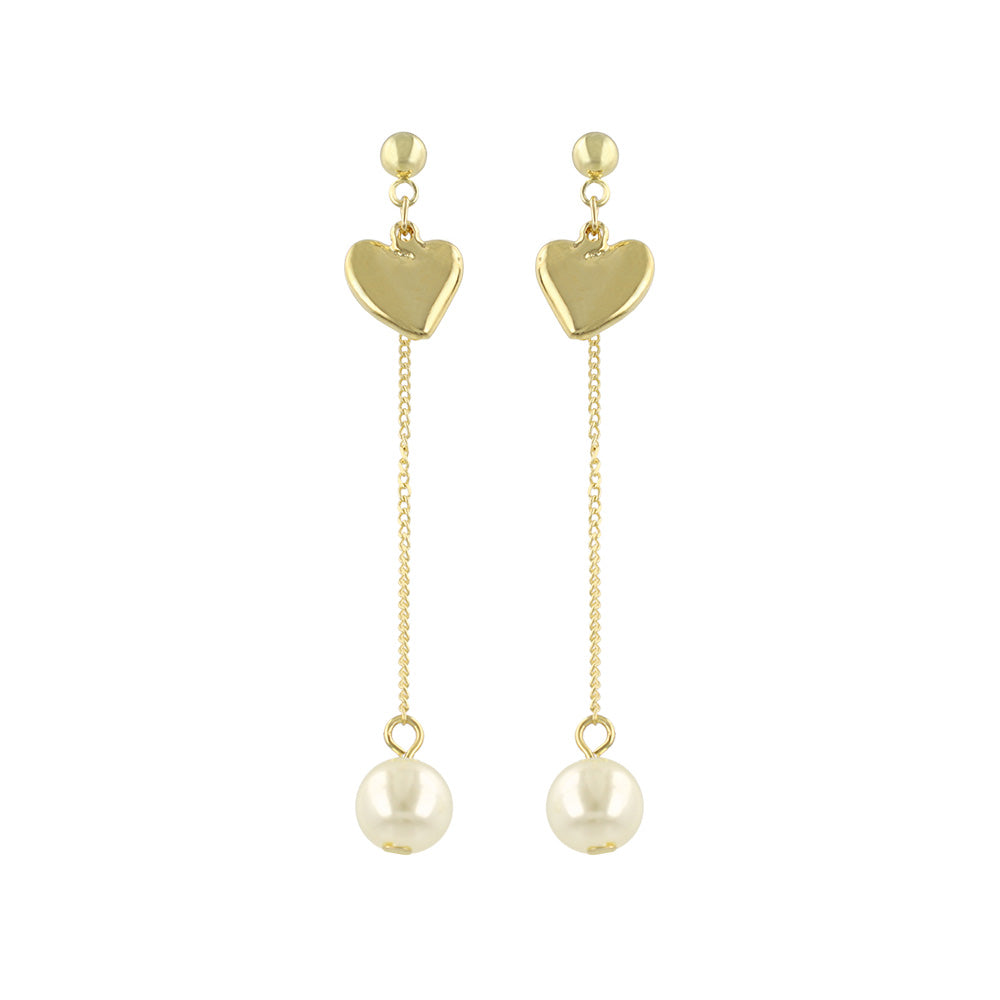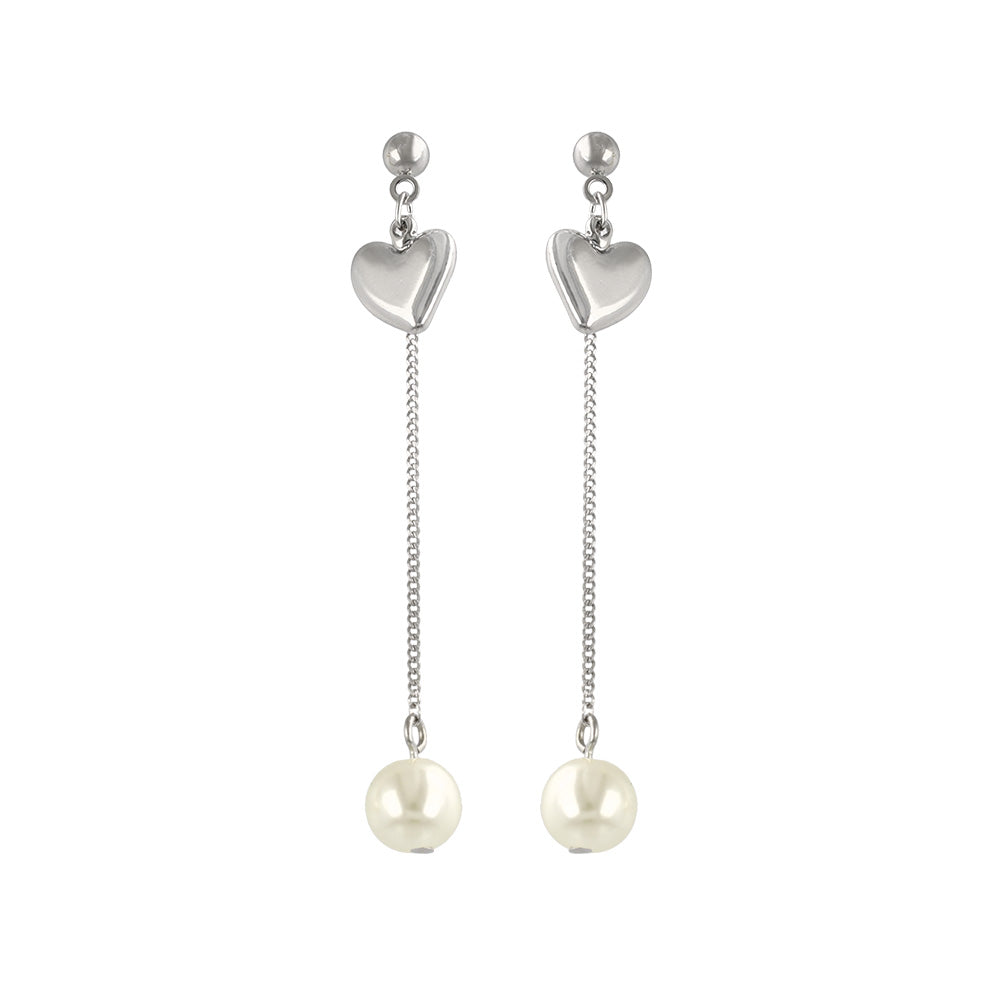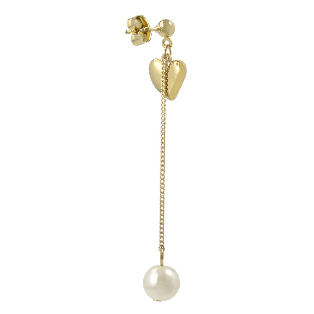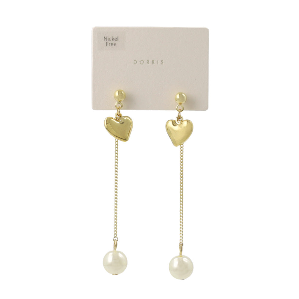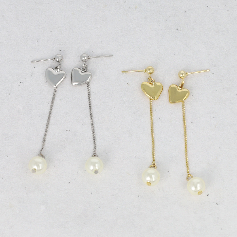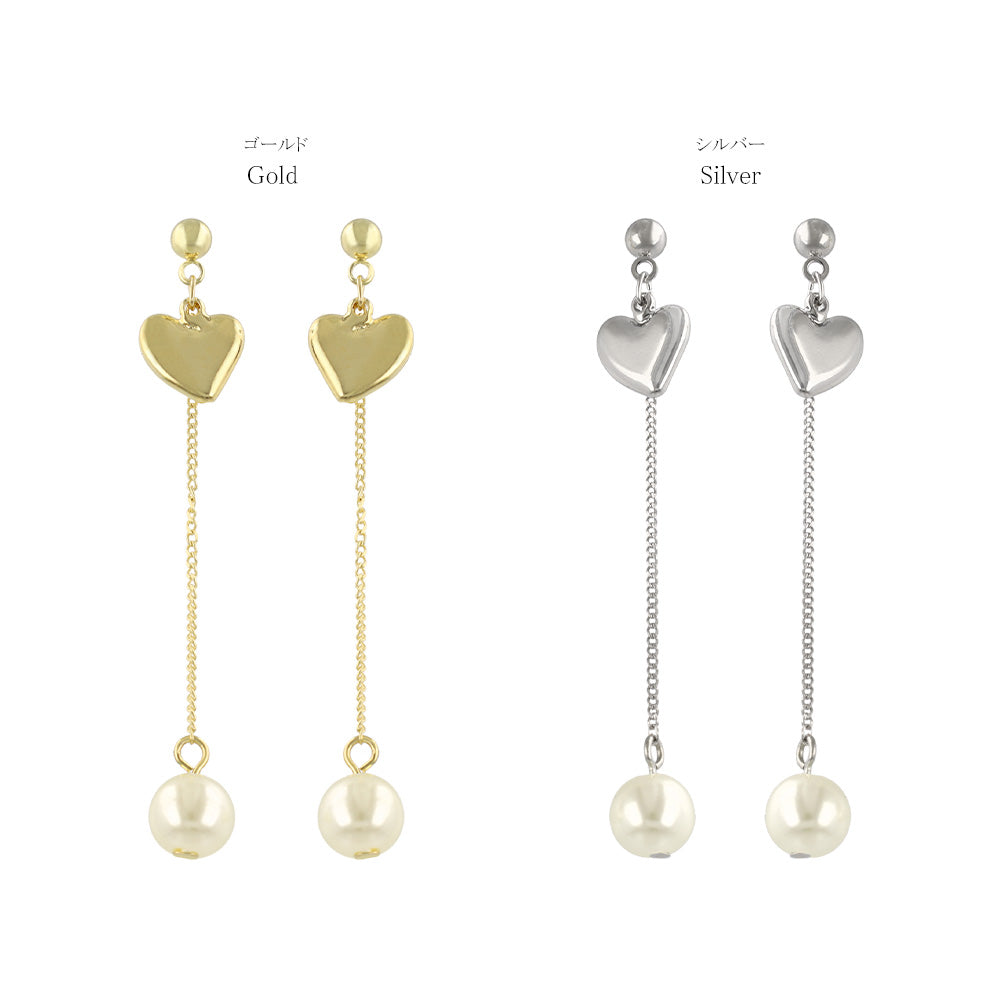 do0981耳元で揺れるパール下がりのデザインピアス。ハートモチーフもメタル素材でカジュアルにも◎