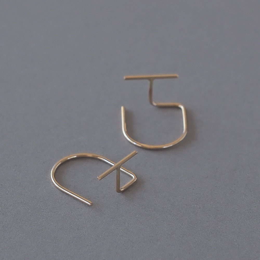 【elaia】ピアス ライン カーブ スタッドピアス オリジナルボックス/巾着付き