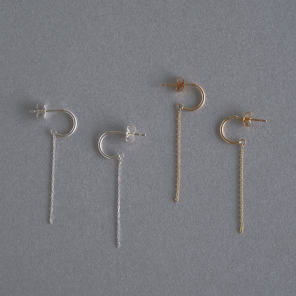 【elaia】ピアス カーブ チェーン スタッドピアス オリジナルボックス/巾着付き
