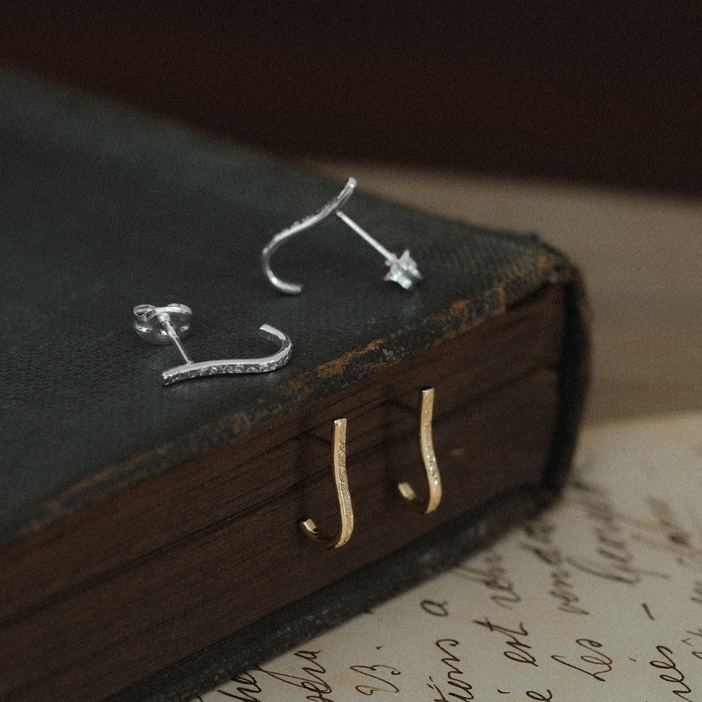【elaia/エライア】 ピアス Silver925/K14ゴールドフィルド J テクスチャー スタッドピアス オリジナルボックス/巾着付き
