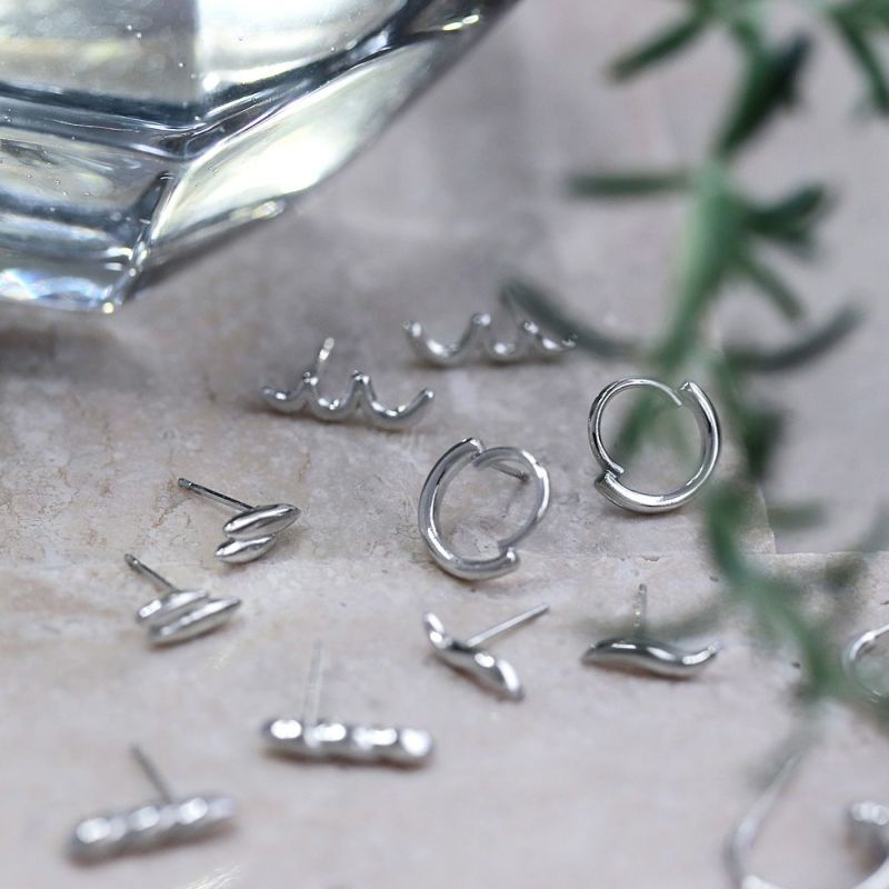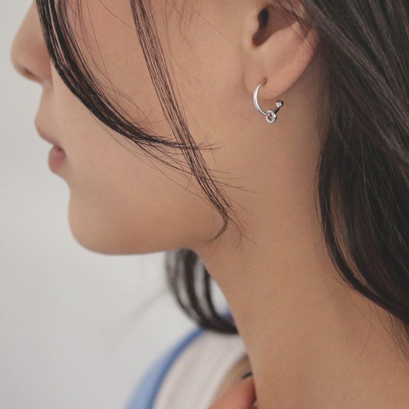 【Finobelle】ヴァイス ピアス 本ロジウム厚メッキ ミニ リング C型 スタッドピアス