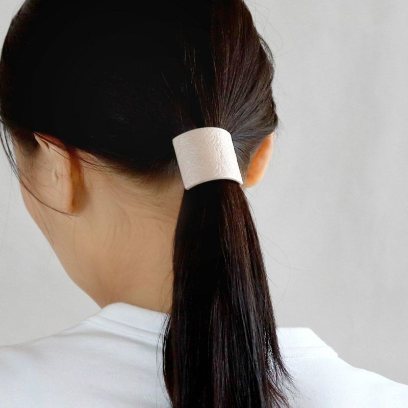 ヘアカフ kati ニッケルフリー カラー レザー スクエア アイボリー ヘアポニー ポニーフック