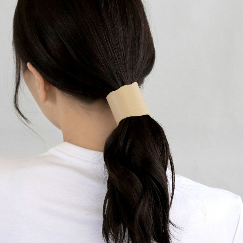 ヘアカフ kati ニッケルフリー レザー ウェーブ ベージュ ロールポニー マグネットカフ