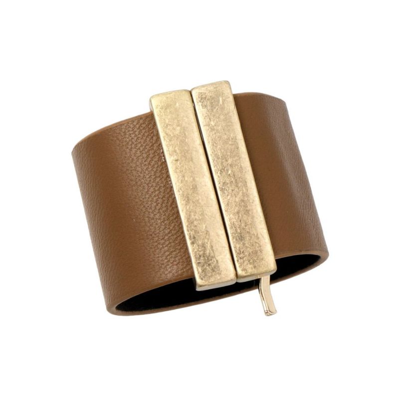 ヘアカフ kati ニッケルフリー レザー メタル ライン ブラウン ロールポニー マグネットカフ
