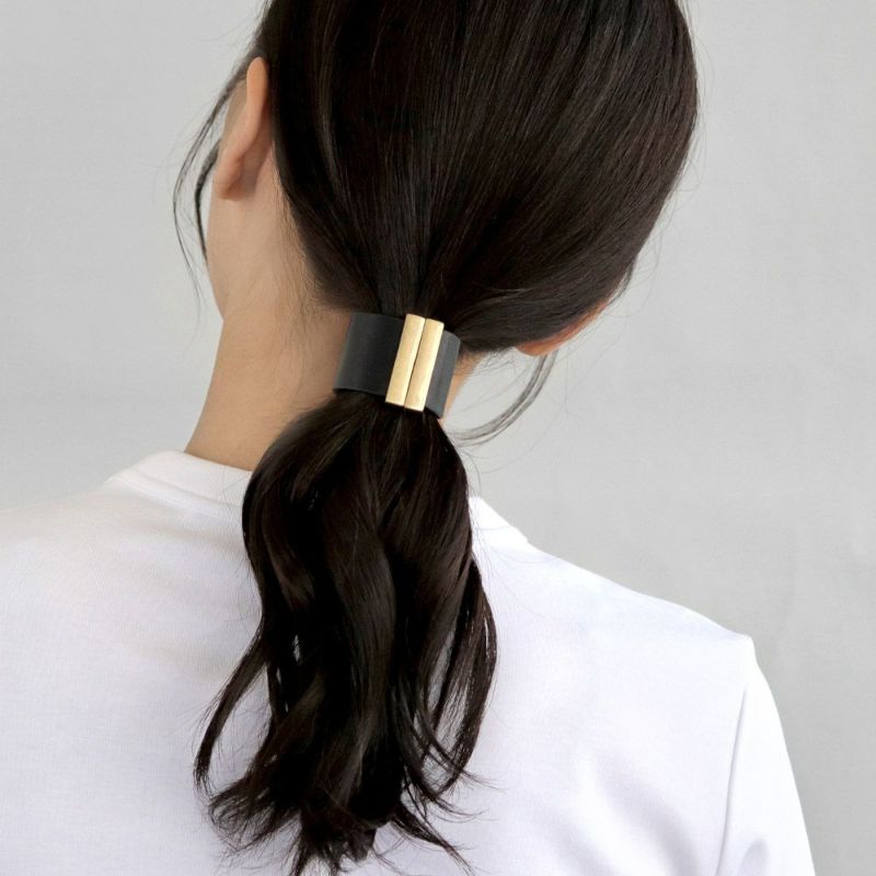ヘアカフ kati ニッケルフリー レザー メタル ライン ブラック ロールポニー マグネットカフ