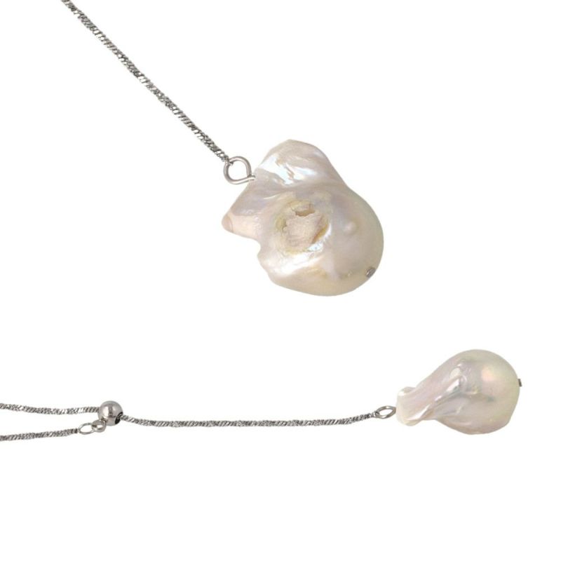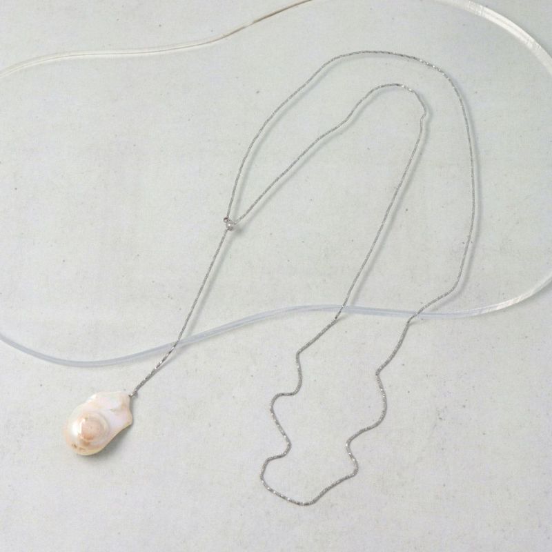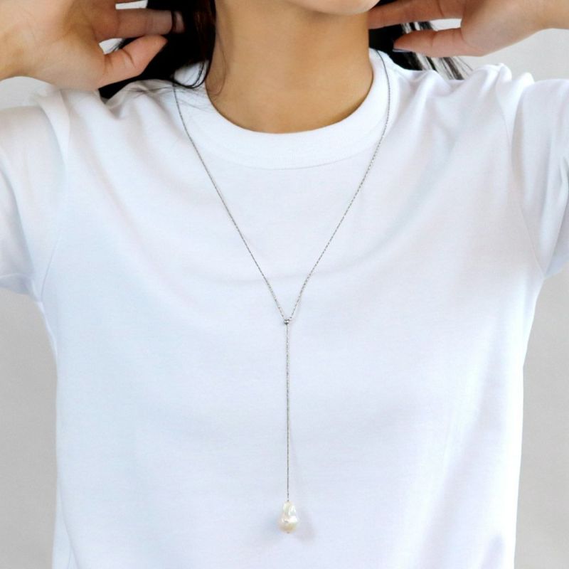 ネックレス kati バロックパール ステンレスチェーン スライドボール Y字 シルバー ロングネックレス ミニジュエリーポーチ付き
