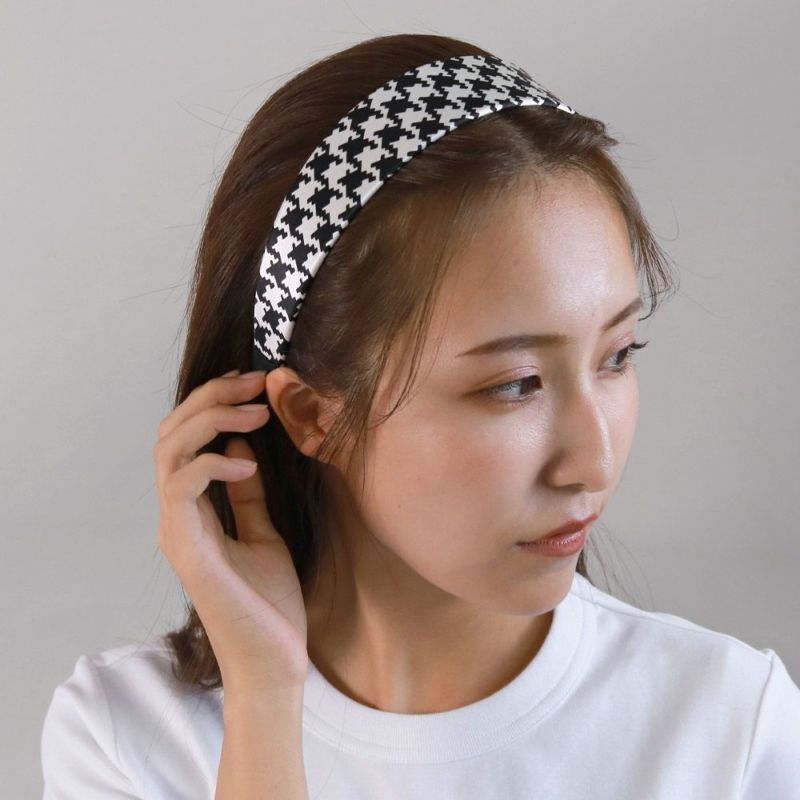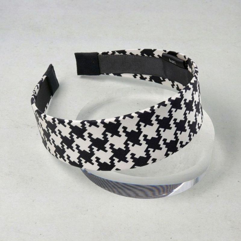カチューシャ kati シルク 千鳥格子柄 ワイド ホワイト
