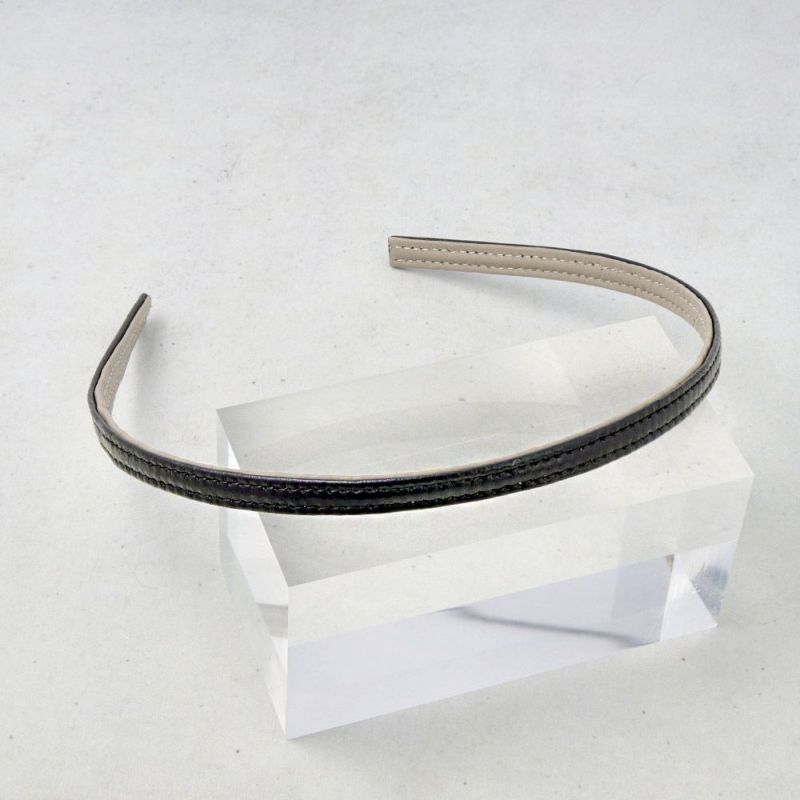 カチューシャ kati レザー 2カラー リバーシブル ステッチ ブラック スリムカチューシャ
