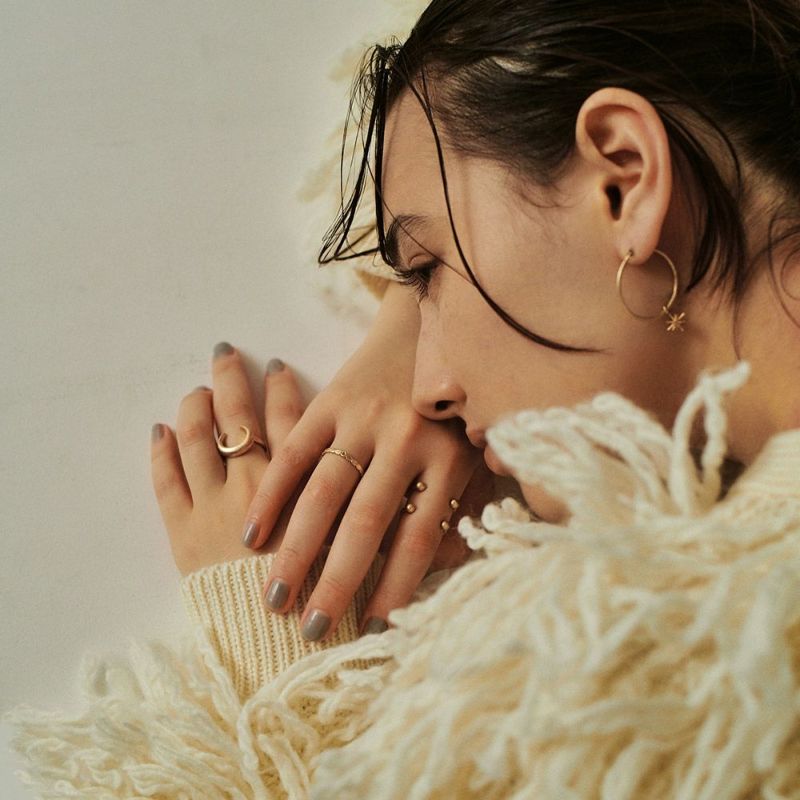 三日月のモチーフに優しい気持ちや自然体の心地よさ、そして幸福感などのポジティブなメッセージを込めた今シリーズ。月明かりのようなふんわりとしたメタルの輝き、大人が身につけてこそ遊びになるモチーフを使ったデザイン。