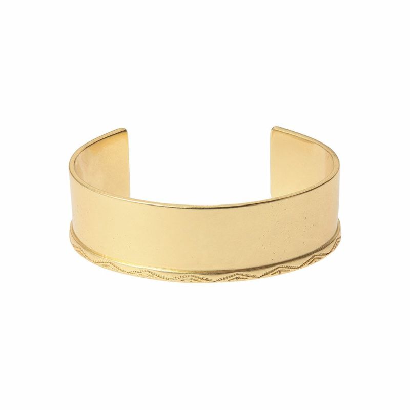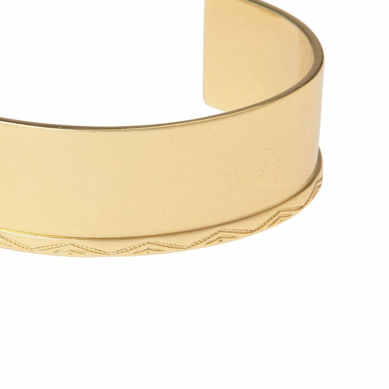 さりげなく彫りを施した、重厚感の漂うハーフバングル。シンプルながらも強さを宿したルックスは、ユニセックスで着用可能。スタイリングをグッと引き締める大ぶりなフォルムで、アクセントを利かせてみて。