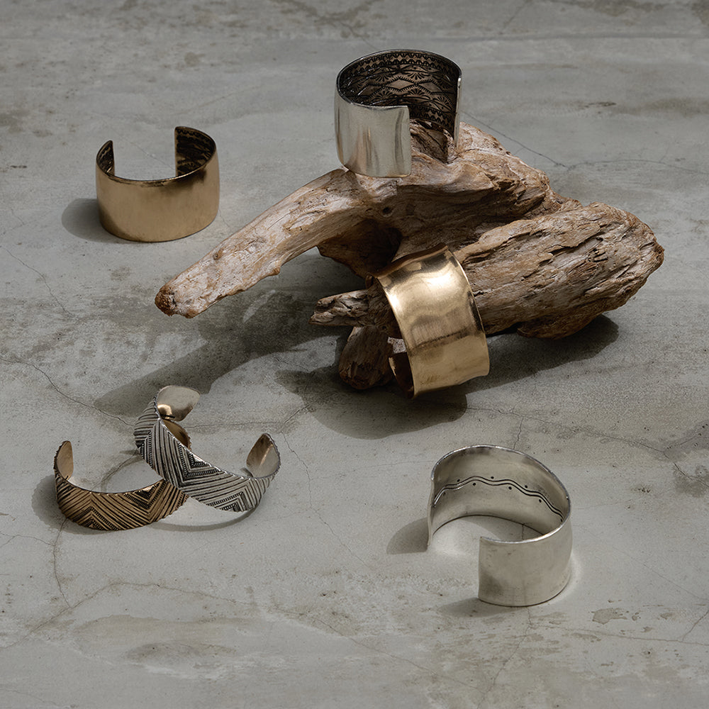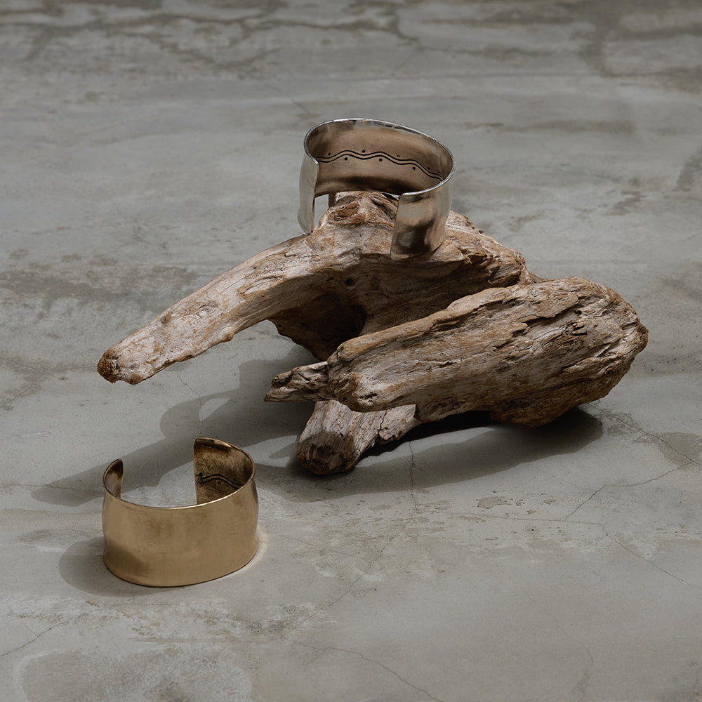 【LIMITED NUMBER】Vintage Like ブレスレット ニッケルフリー メタル ウェーブ ワイド プレート インナー ドロー ハーフバングル