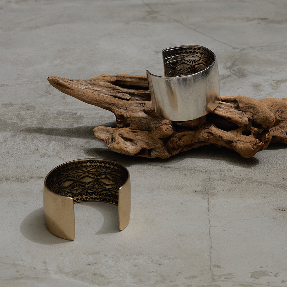 【LIMITED NUMBER】Vintage Like ブレスレット ニッケルフリー メタル フラット ワイド プレート インナー ドロー ハーフバングル