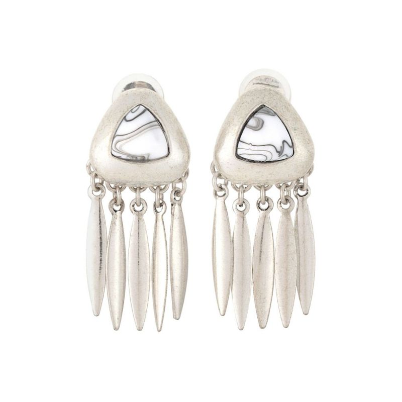 【LIMITED NUMBER】Vintage Like イヤリング ニッケルフリー メタル トライアングル マーブル タッセル クリップイヤリング シリコンカバー付き