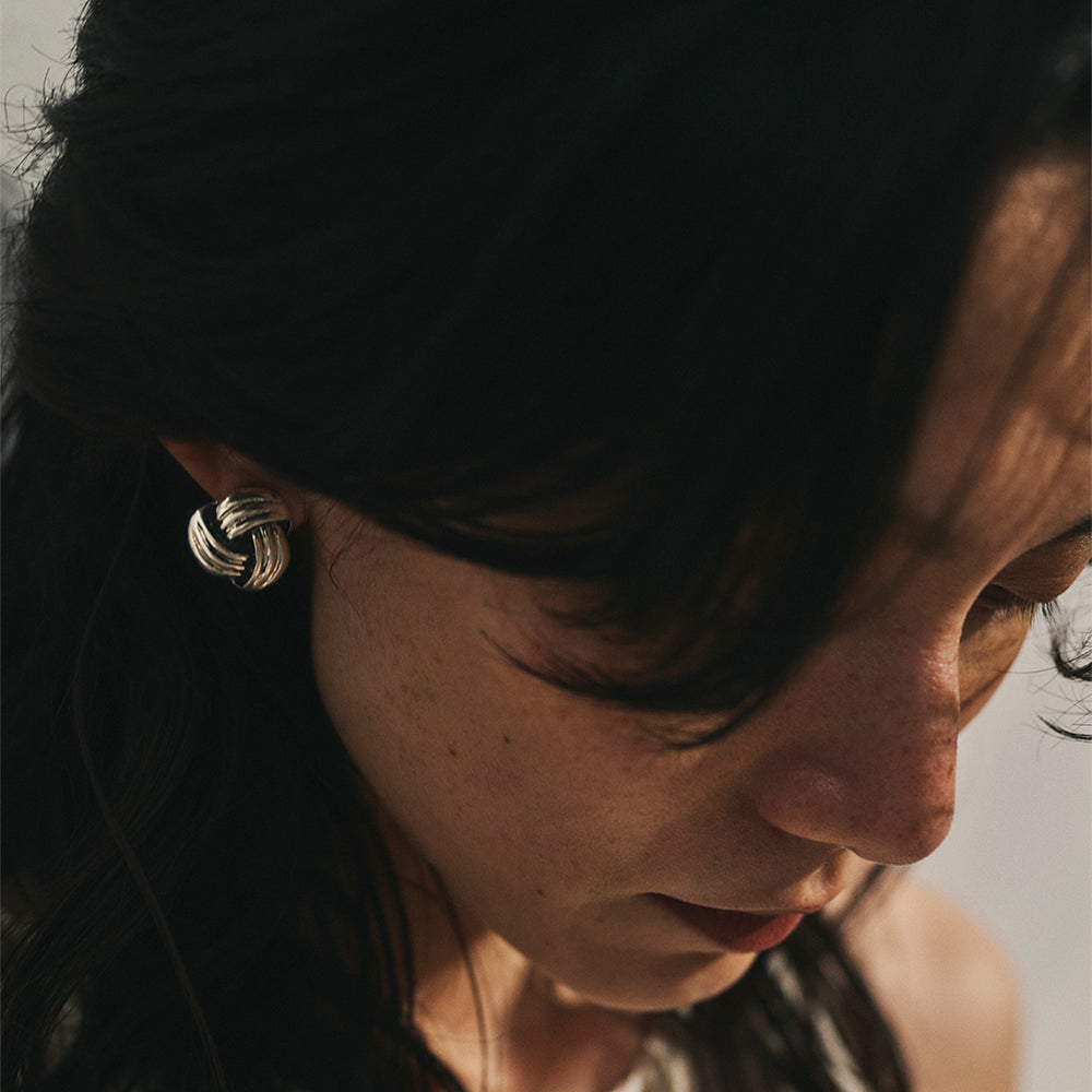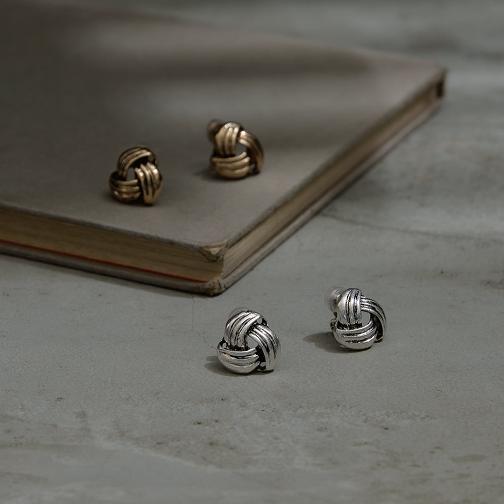 【LIMITED NUMBER】Vintage Like イヤリング ニッケルフリー メタル ライン ボタン クリップイヤリング シリコンカバー付き