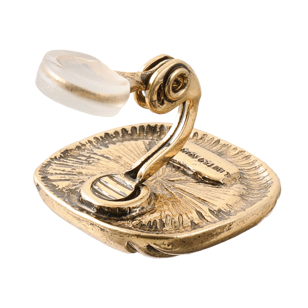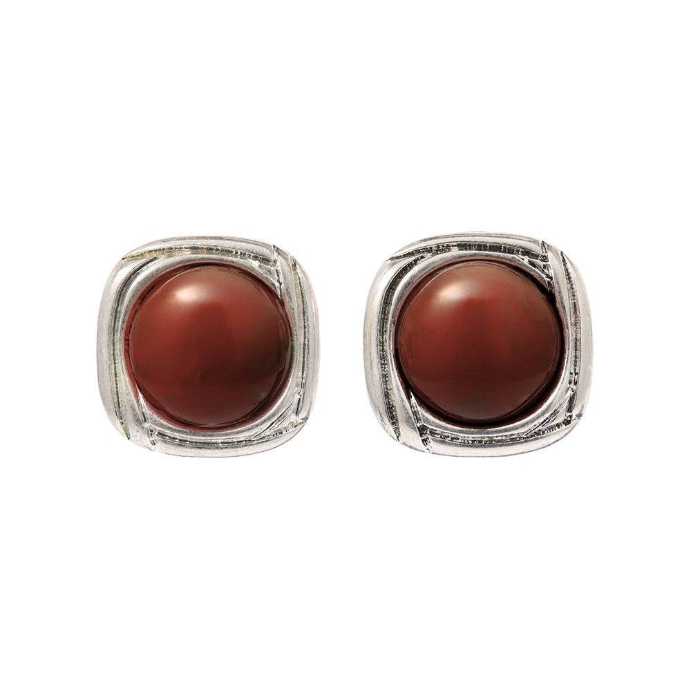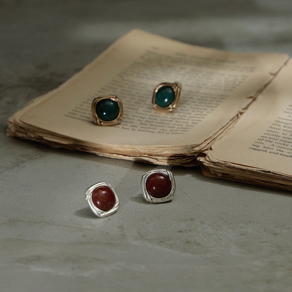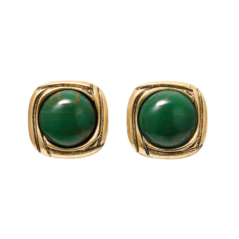 【LIMITED NUMBER】Vintage Like イヤリング ニッケルフリー メタル スクエア フレーム ライン マーブルカラー ストーン クリップイヤリング シリコンカバー付き