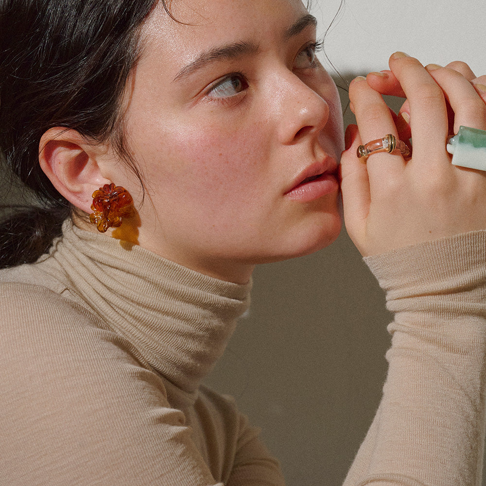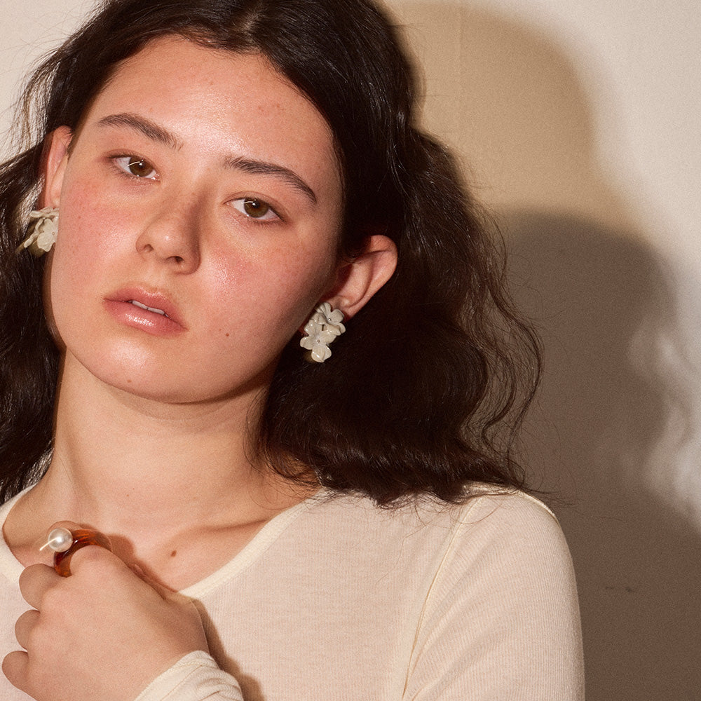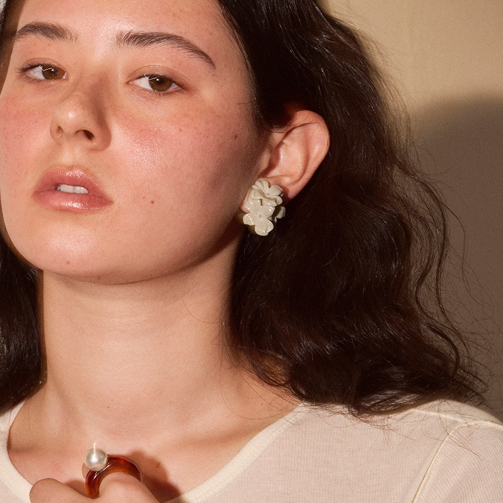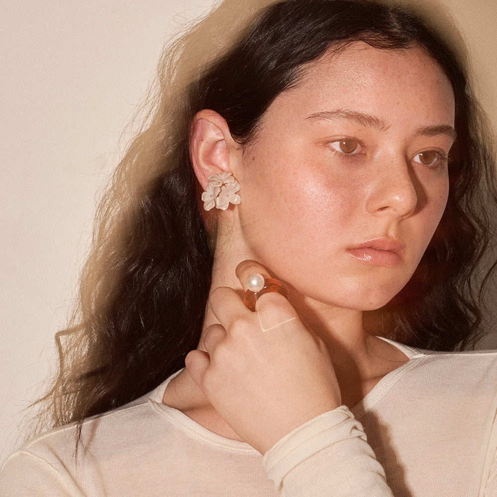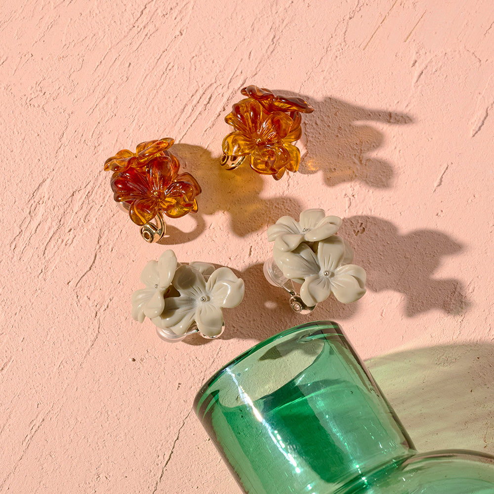 【LIMITED NUMBER/リミテッドナンバー】MELLOW トリプル フラワー マーブル カラー クリップイヤリング シリコンカバー付き