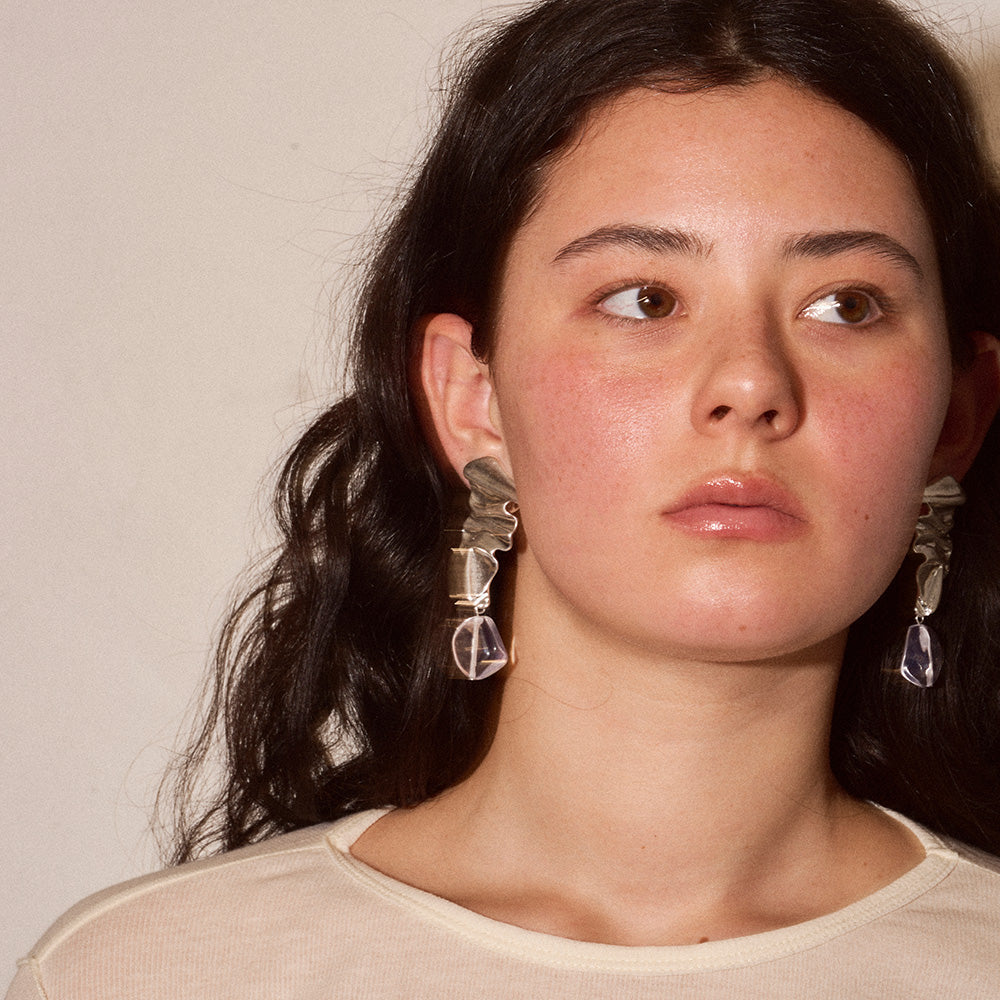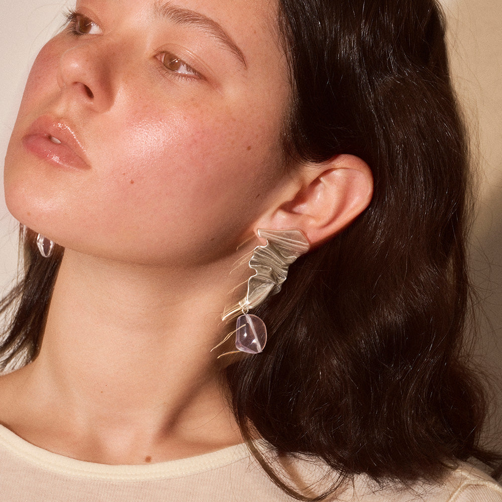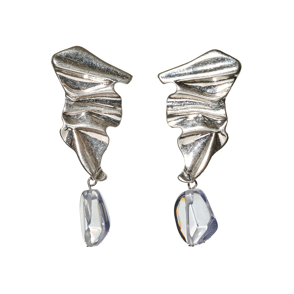 【LIMITED NUMBER/リミテッドナンバー】MELLOW クラッシュ プレート マーブル クリア ストーンビーズ クリップイヤリング シリコンカバー付き