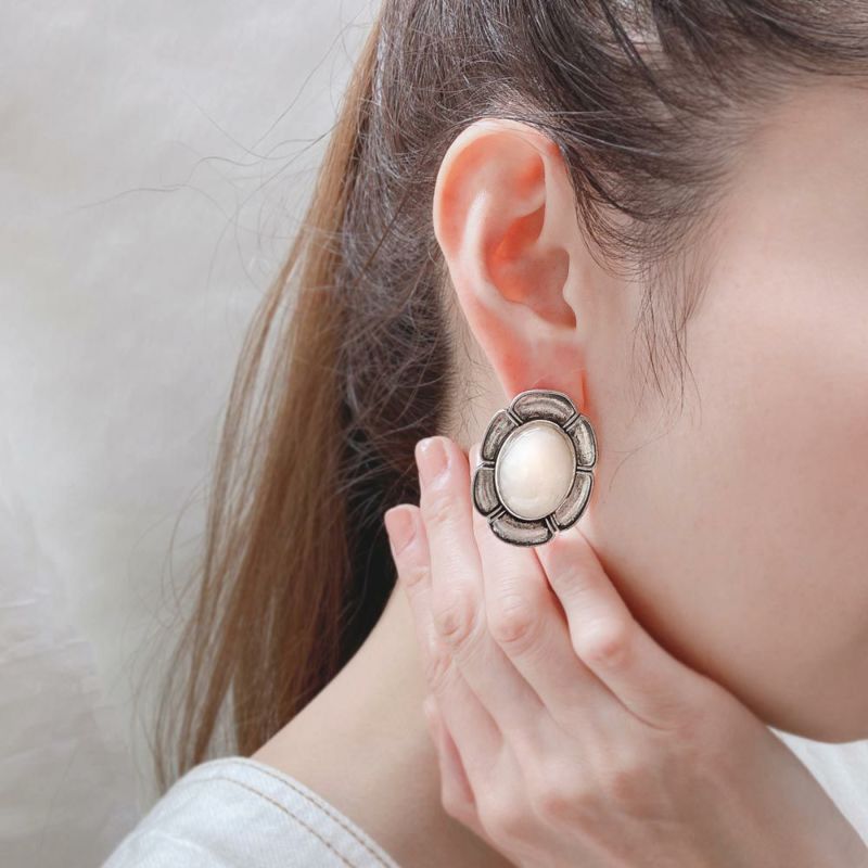 【LIMITED NUMBER】Vintage Like ピアス ニッケルフリー メタル フラワー チタンポスト ディスクキャッチ付き スタッドピアス