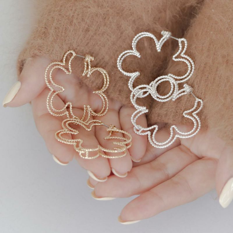 【LIMITED NUMBER】witty No,22 ヴィンテージライク フラワー チタンポスト フープピアス ニッケルフリー