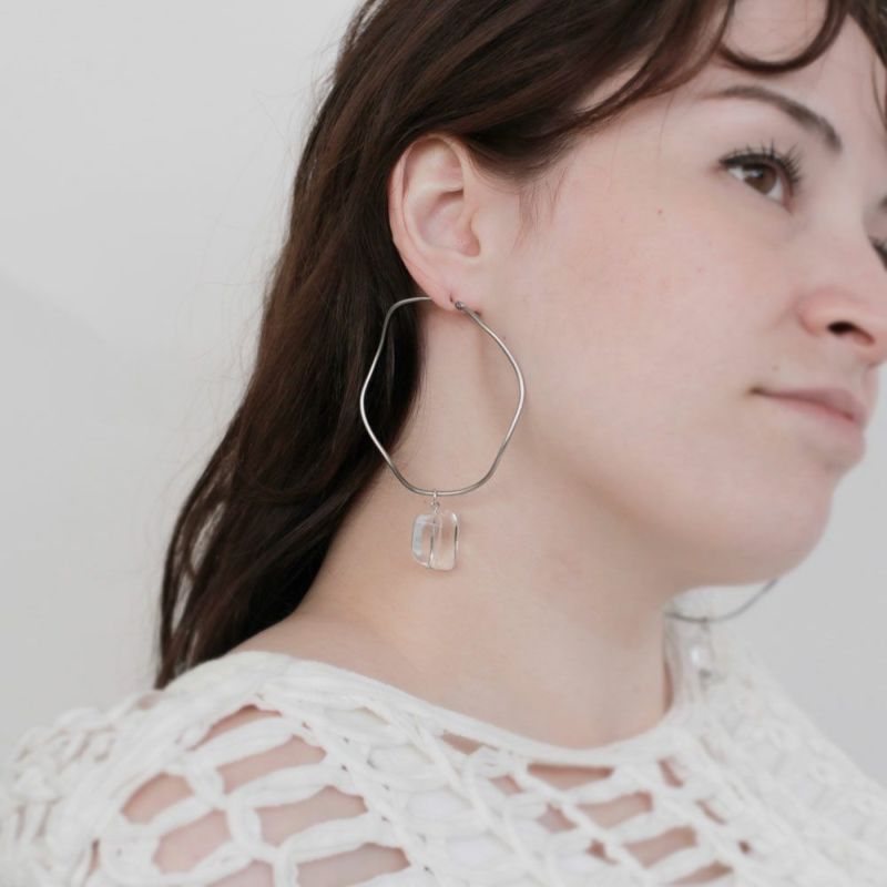 【LIMITED NUMBER】MELLOW メタル サークル ウェーブ ガラスパール クリア チタンポスト フープピアス ニッケルフリー