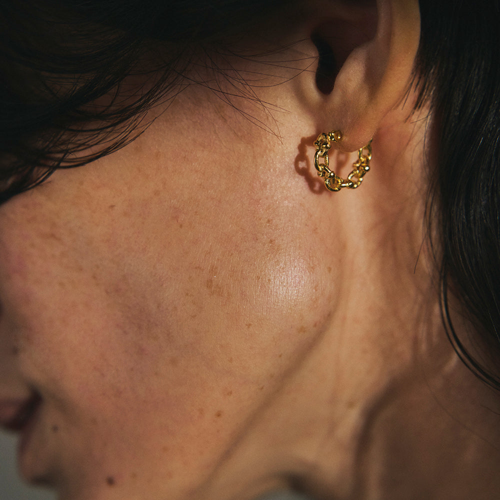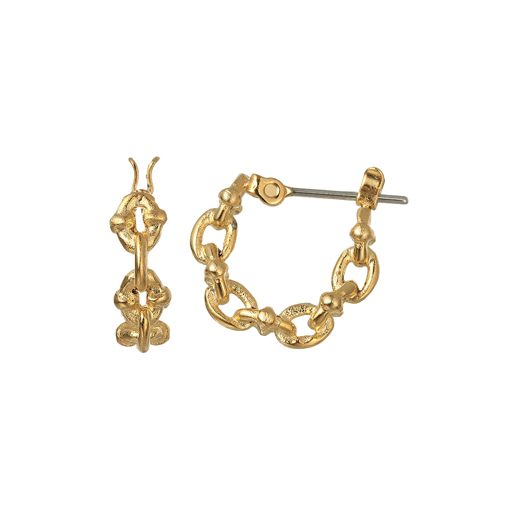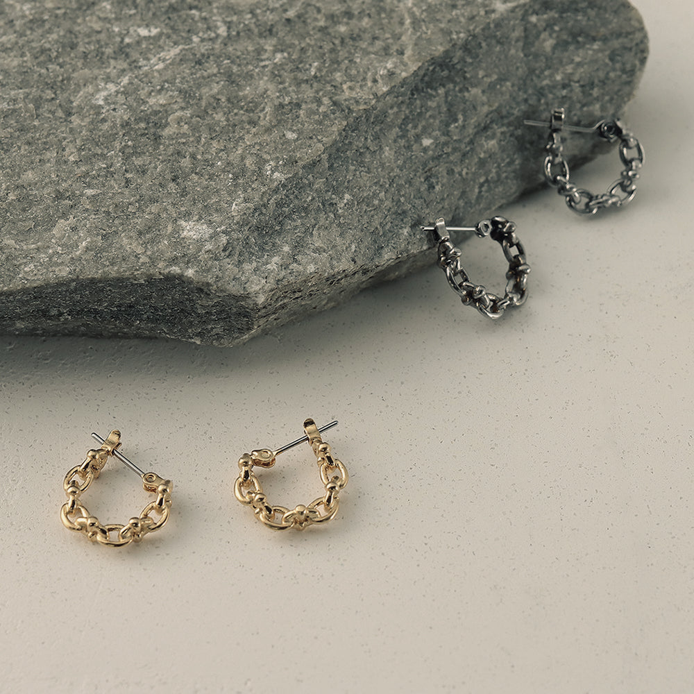 【LIMITED NUMBER】STAINLESS collection ピアス メタル デザイン リンクチェーン ワンタッチ フープピアス
