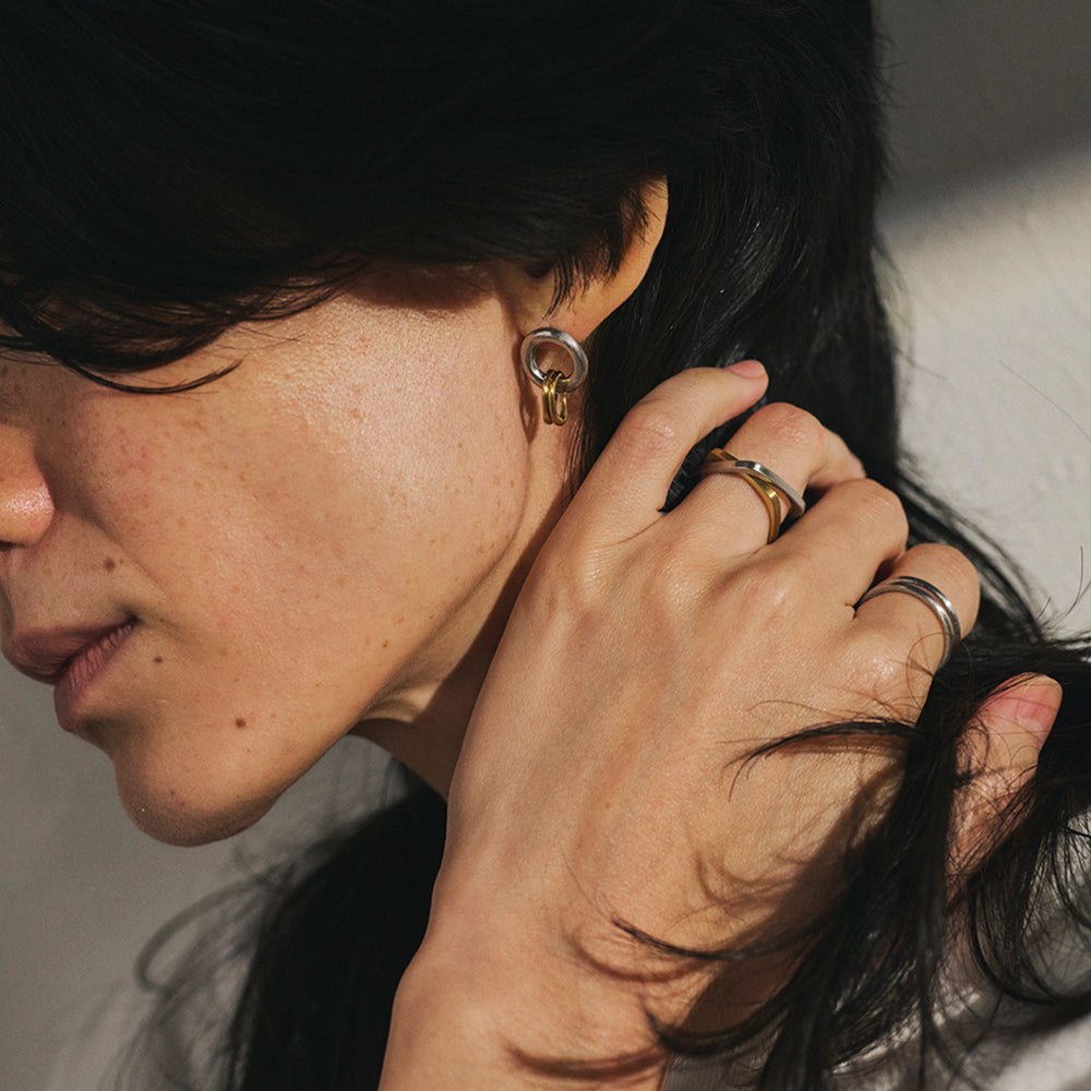 【LIMITED NUMBER】STAINLESS collection ピアス メタル トリプル リング コンビカラー スタッドピアス